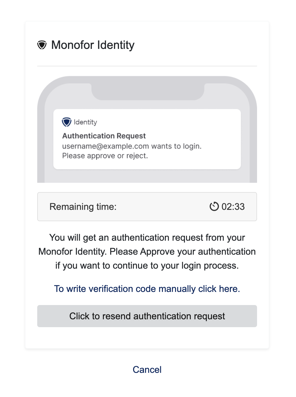 If the system is configured to force users to use MFA, you will be redirected to the MFA approving page as shown. Otherwise, users will be redirected to the MFA configuration page to verify that MFA is activated.