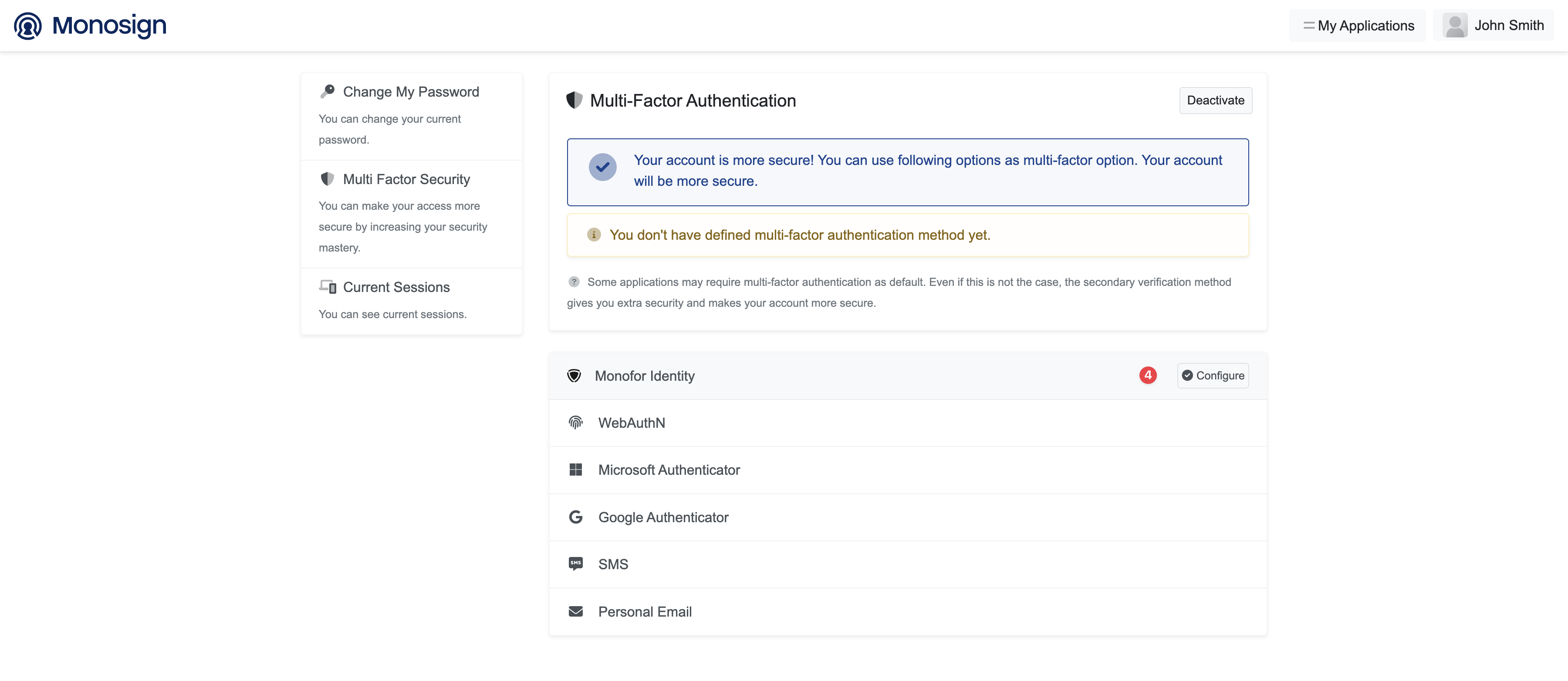 After signing in to Monosign, the user will be redirected to the page to configure Monofor Identity.