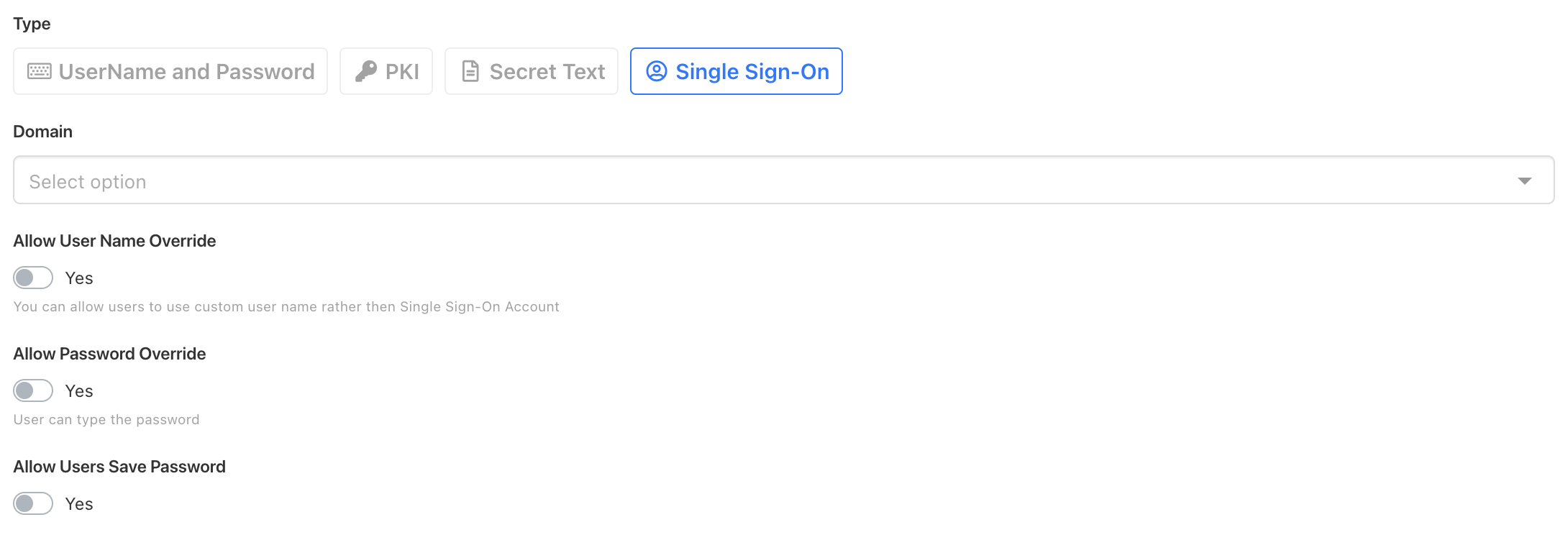 This option allows users to use their username and password to connect any resource.