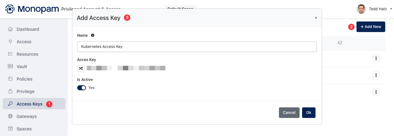 Now we need to store Monopam Access Key in Kubernetes Secret Storage.