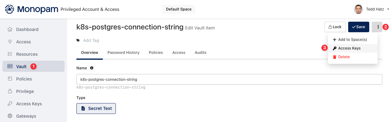 5. Map your Monopam Vault Item (Credential) to the Kubernetes