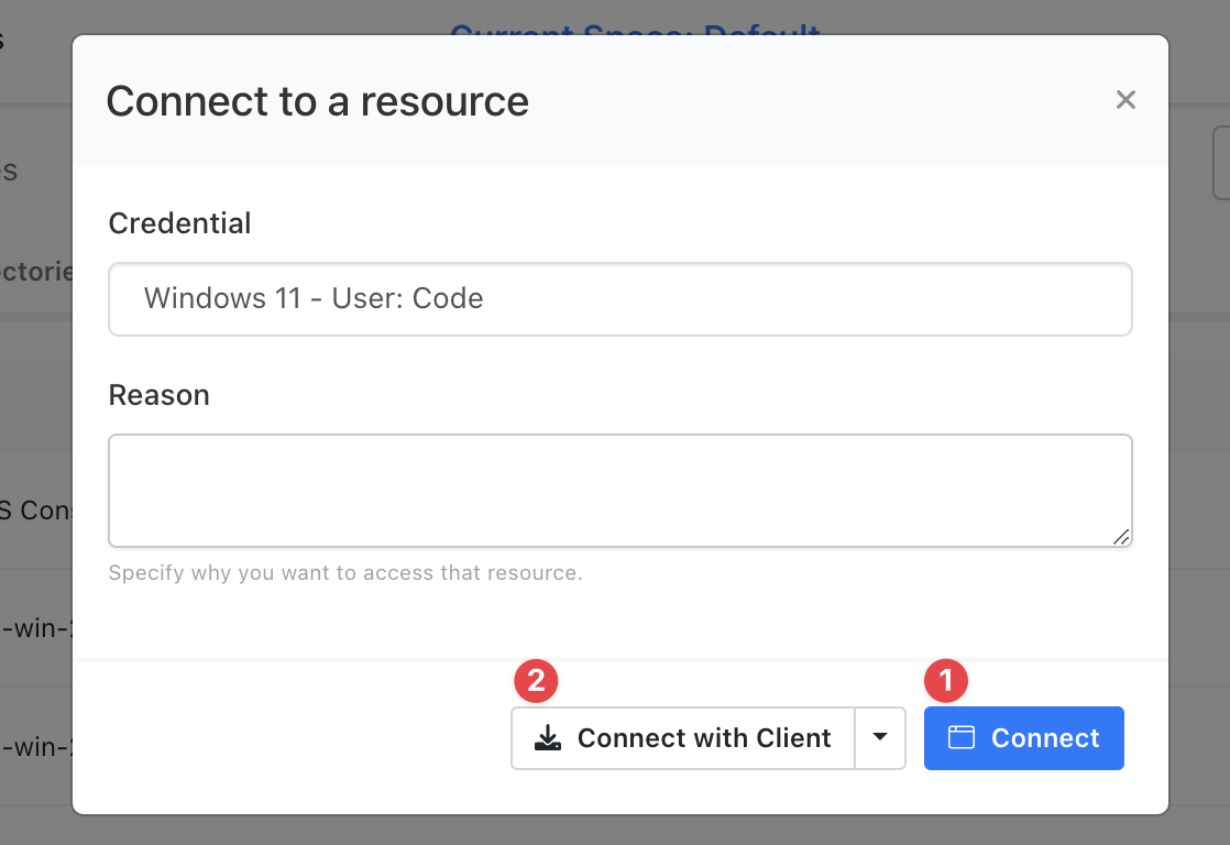When you click “Connect” it will show you a modal window to access your resource.