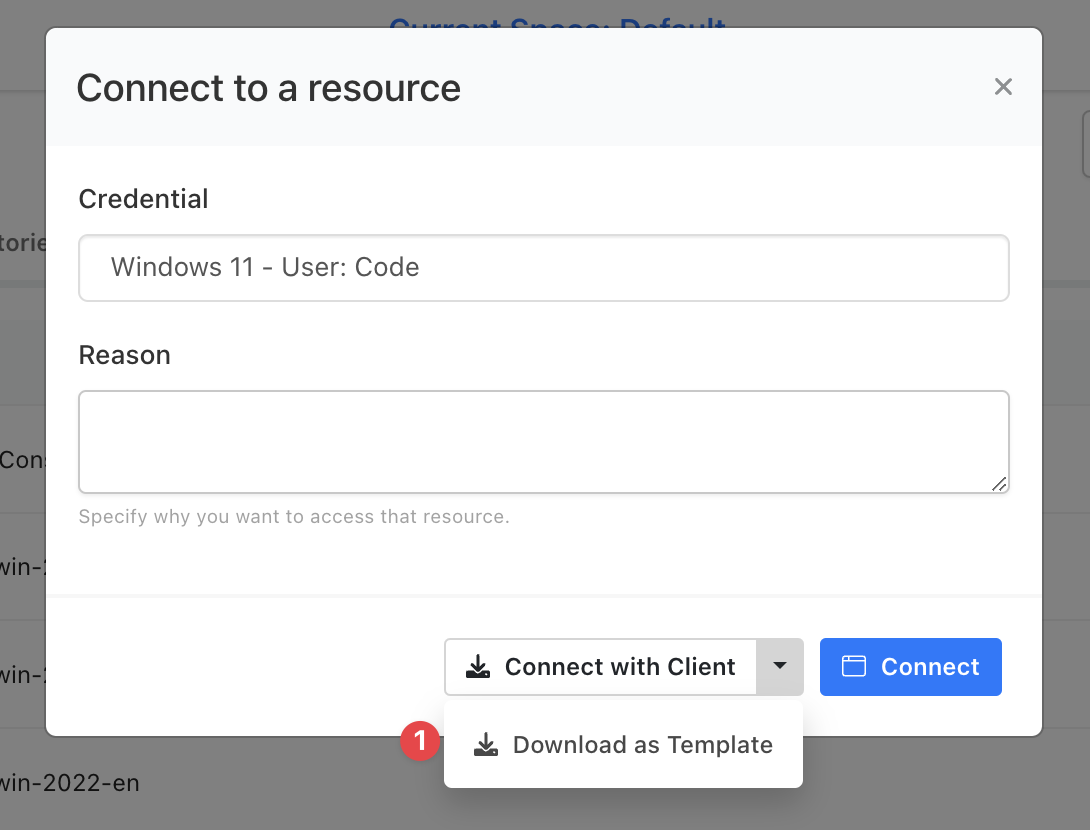 You can also connect to your resources with your RDP client software, such as “mstsc - Microsoft’s Remote Desktop” program that every Windows version has, Remote Desktop Manager or any other software that supports RDP files to connect.