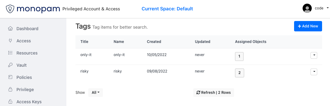 Tags help you to mark a resource, a credential, or a user on the system. You can also use this information while you create a policy.