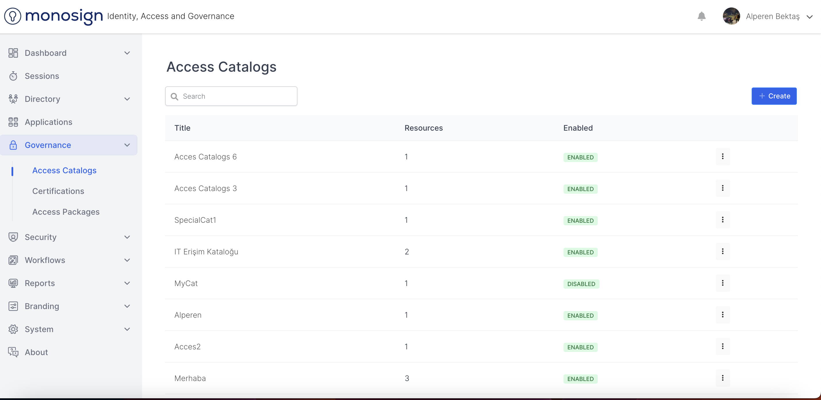 You must create the resources to be included in the access packages in the Access Catalogs section.