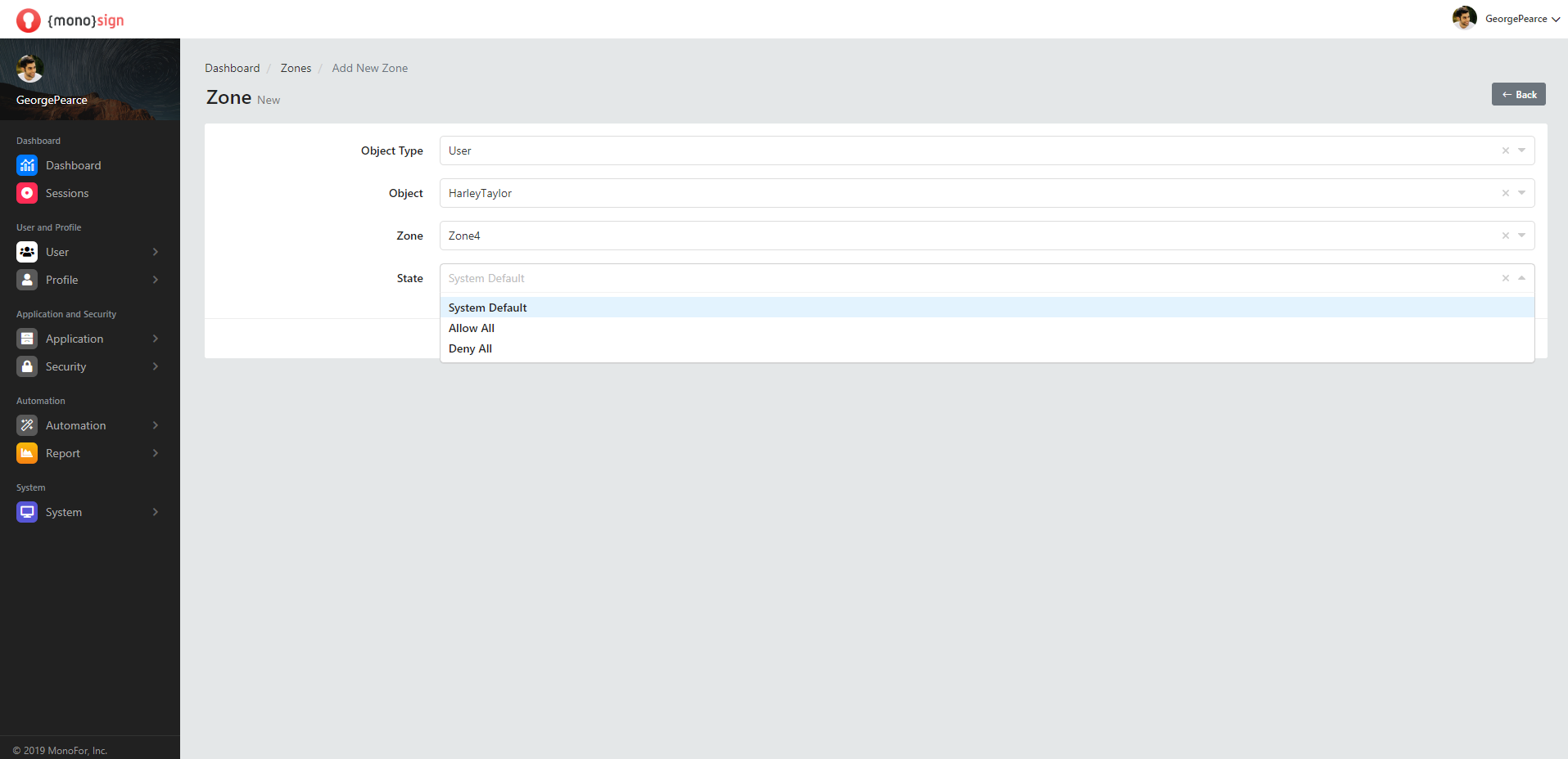 System Default - System Default allows you to set the state of the zone as the system default when adding the object to the zone to be added.