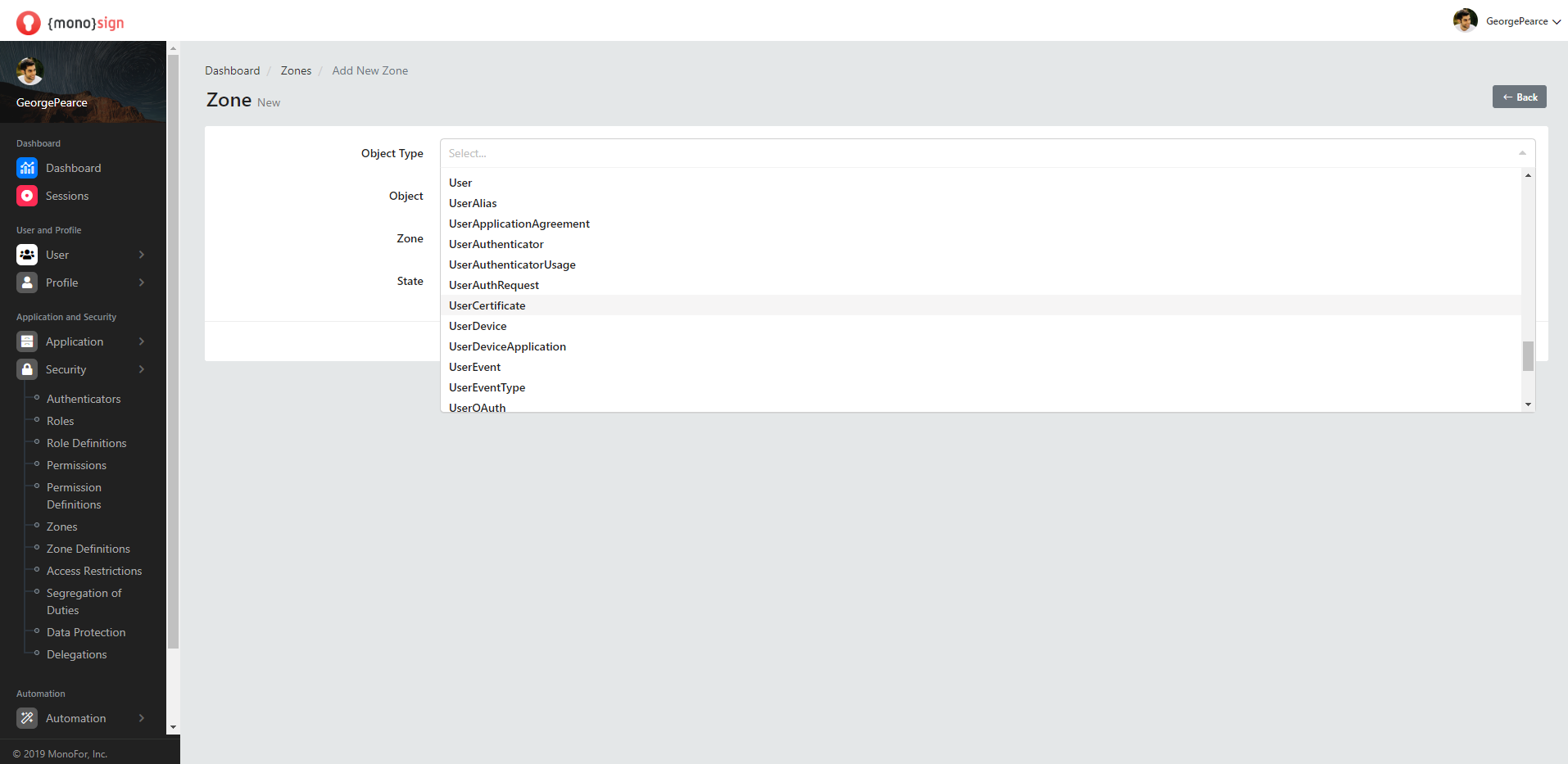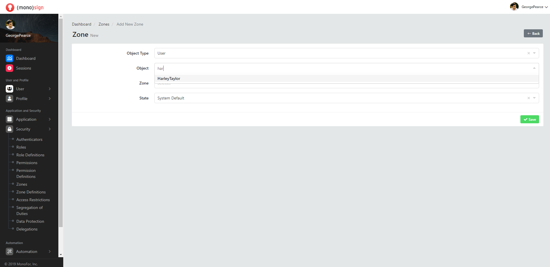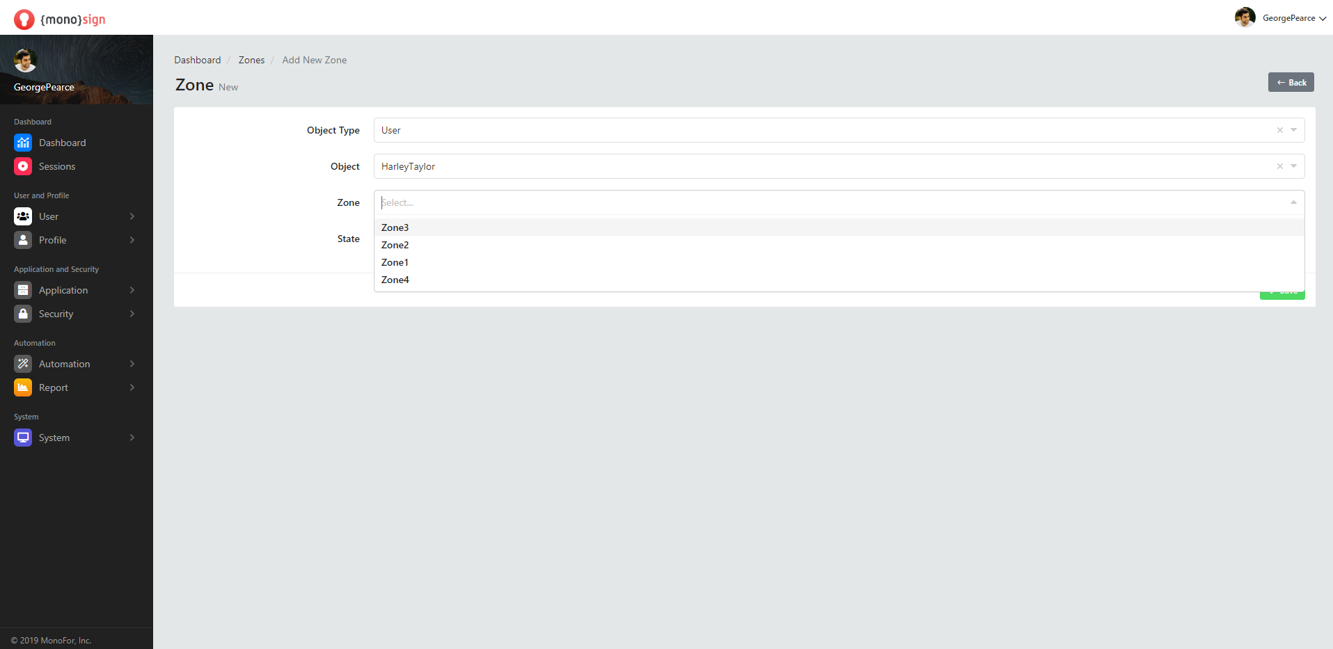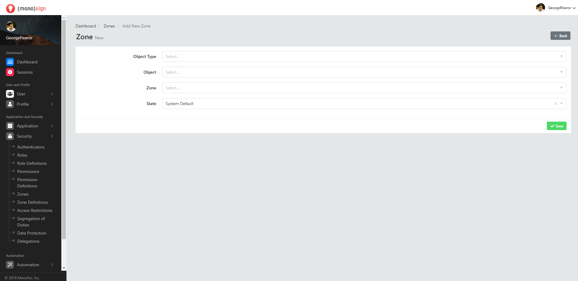 The Add New Zone page is the page where you can assign objects to a zone. You can perform your zone assignment, defined on the zone definitions page, to the objects defined on the system.