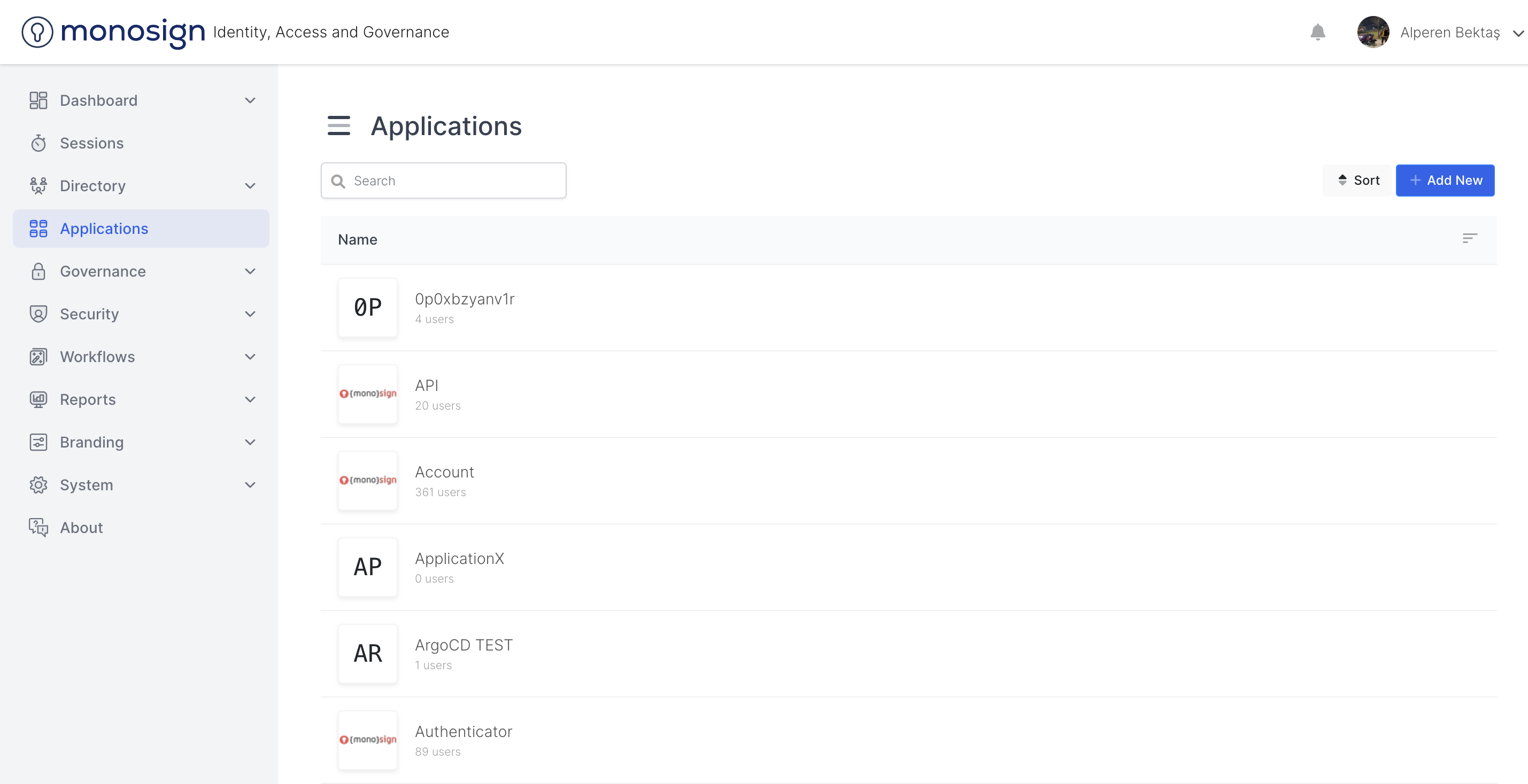 Applications is the section where you can view the applications that are active on Single Sign On.