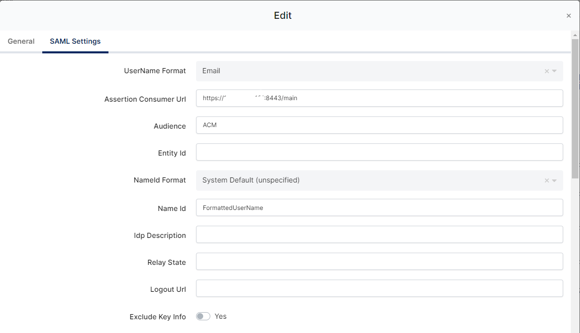 Please add your SAML settings to the application. The following information is needed for your configuration.