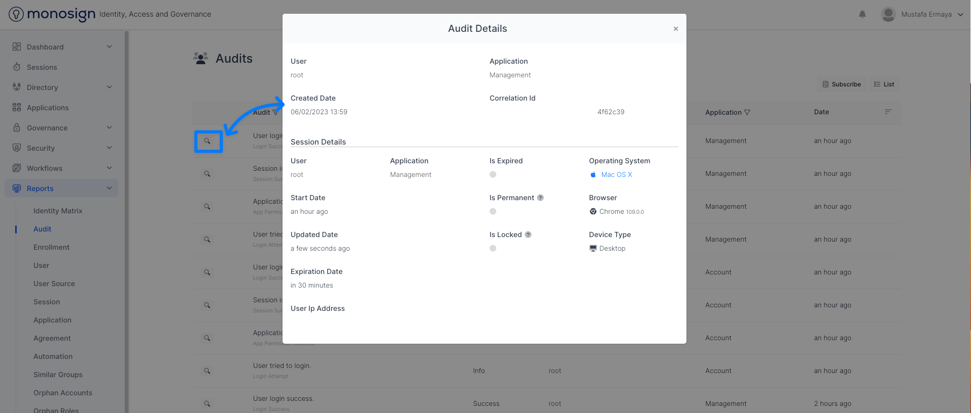 Details | Audit Details. For Example: Let’s assume Login Success audit definition wants to be detailed such as which user logged into which application from which browser. Admin user should click the detail button as shown. ![]() Audit Detail |
