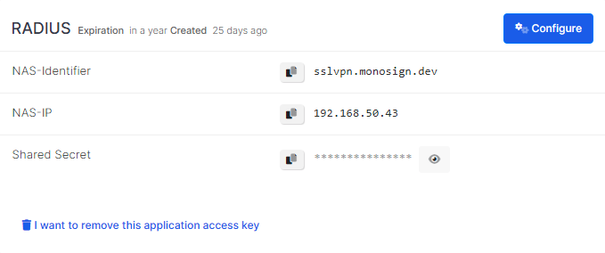 Navigate to the application dedicated to RADIUS Server. Once you navigate, click Keys and Add New Key to create a RADIUS access key.