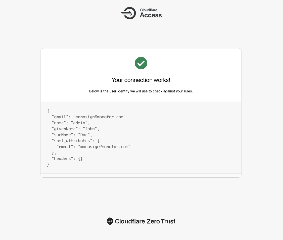 If the process is successful after entering the user information, you will redirect to Cloudflare Access page to result of your test .