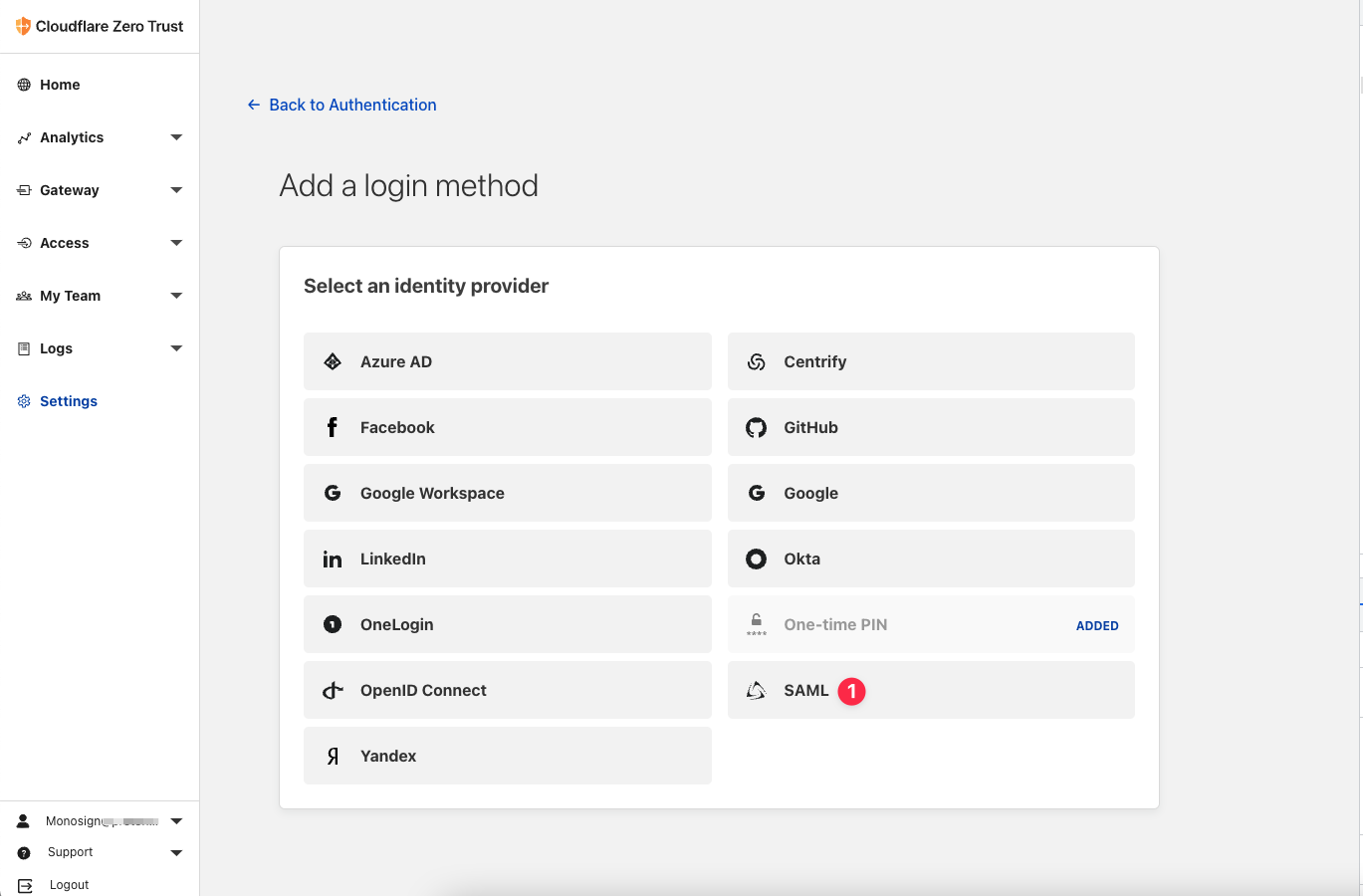 This document explains how to implement MonoSign with Cloudflare. It covers Single Sign-On. Before you continue, it is better to start with Cloudflare’s Single Sign-On implementation page.