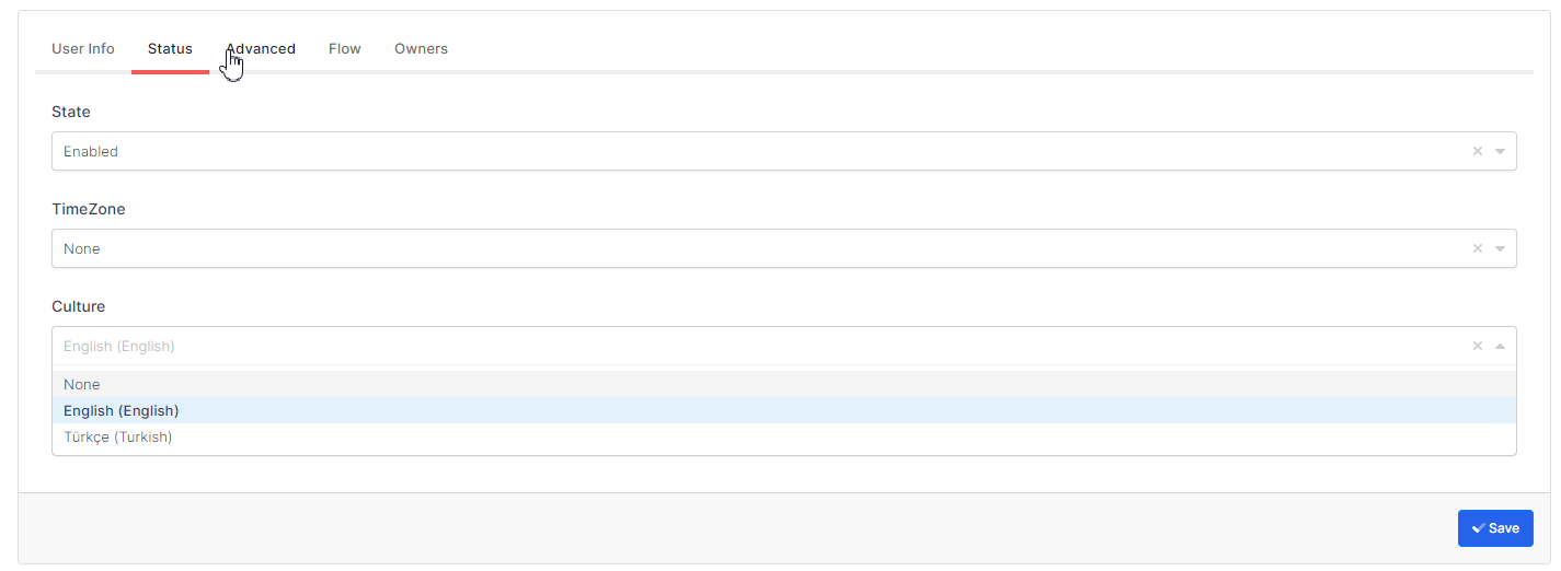 Culture ın the section, the language in which the user will use the system is selected.