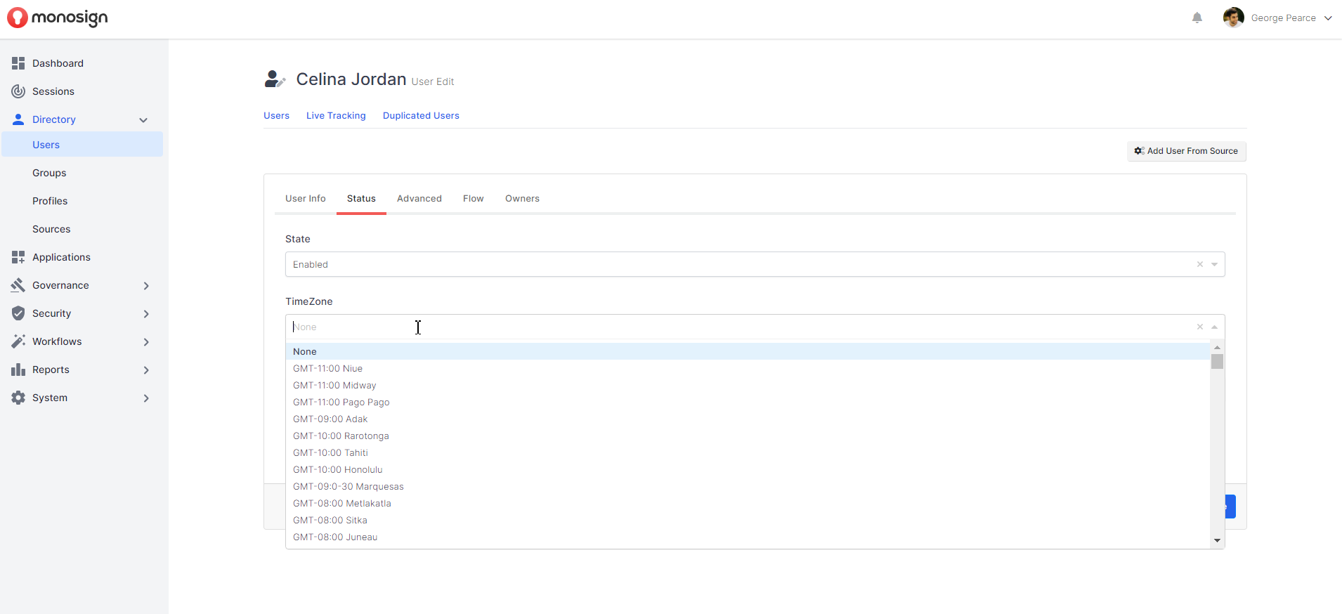 Time Zone from when to select the user system time.