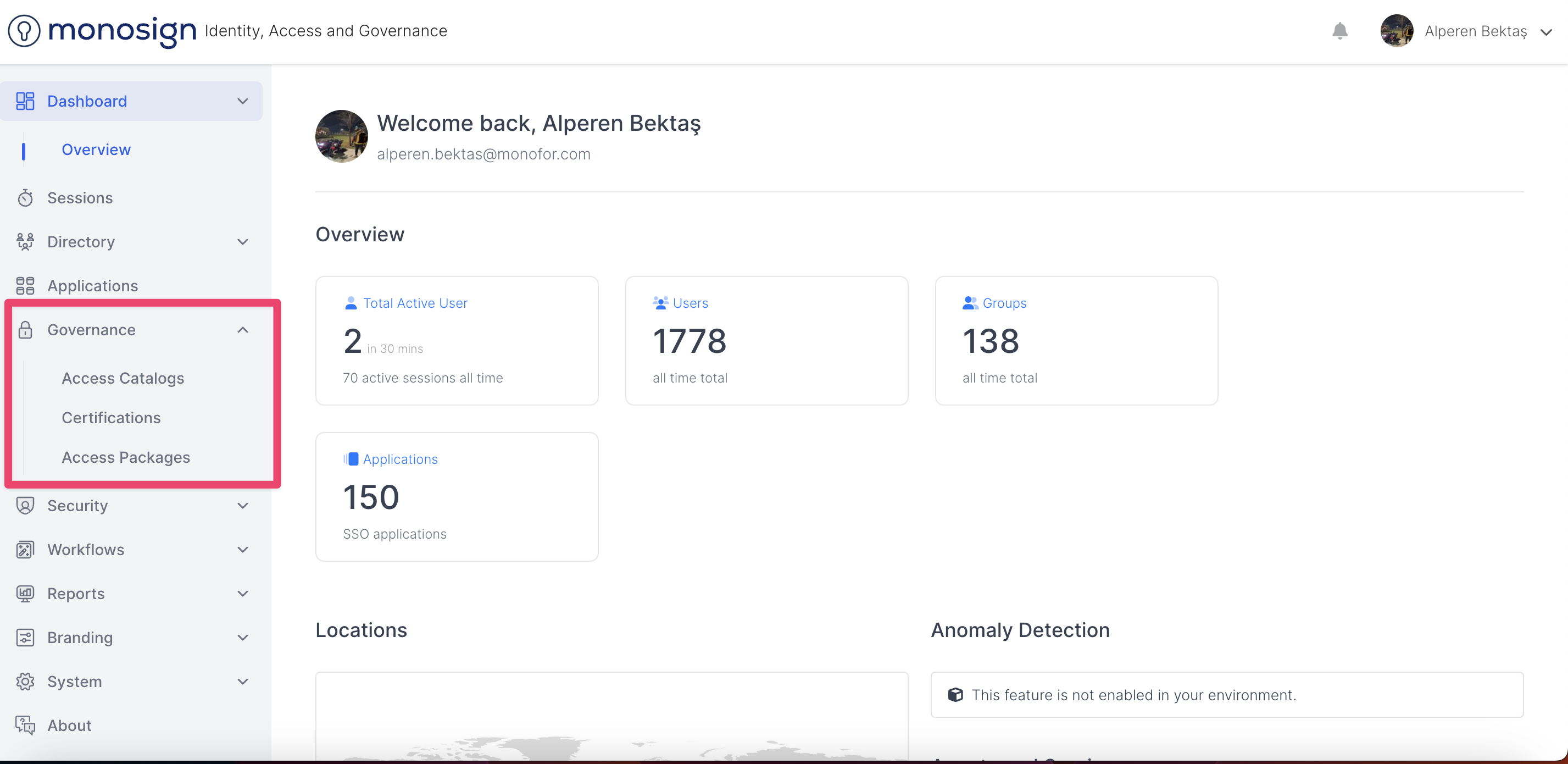 This is the section where you can manage the features.