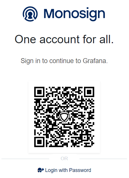 If everything is well configured, the page will be redirected to Monosign’s login page. It can be log in passwordless with QR code or type username and password.