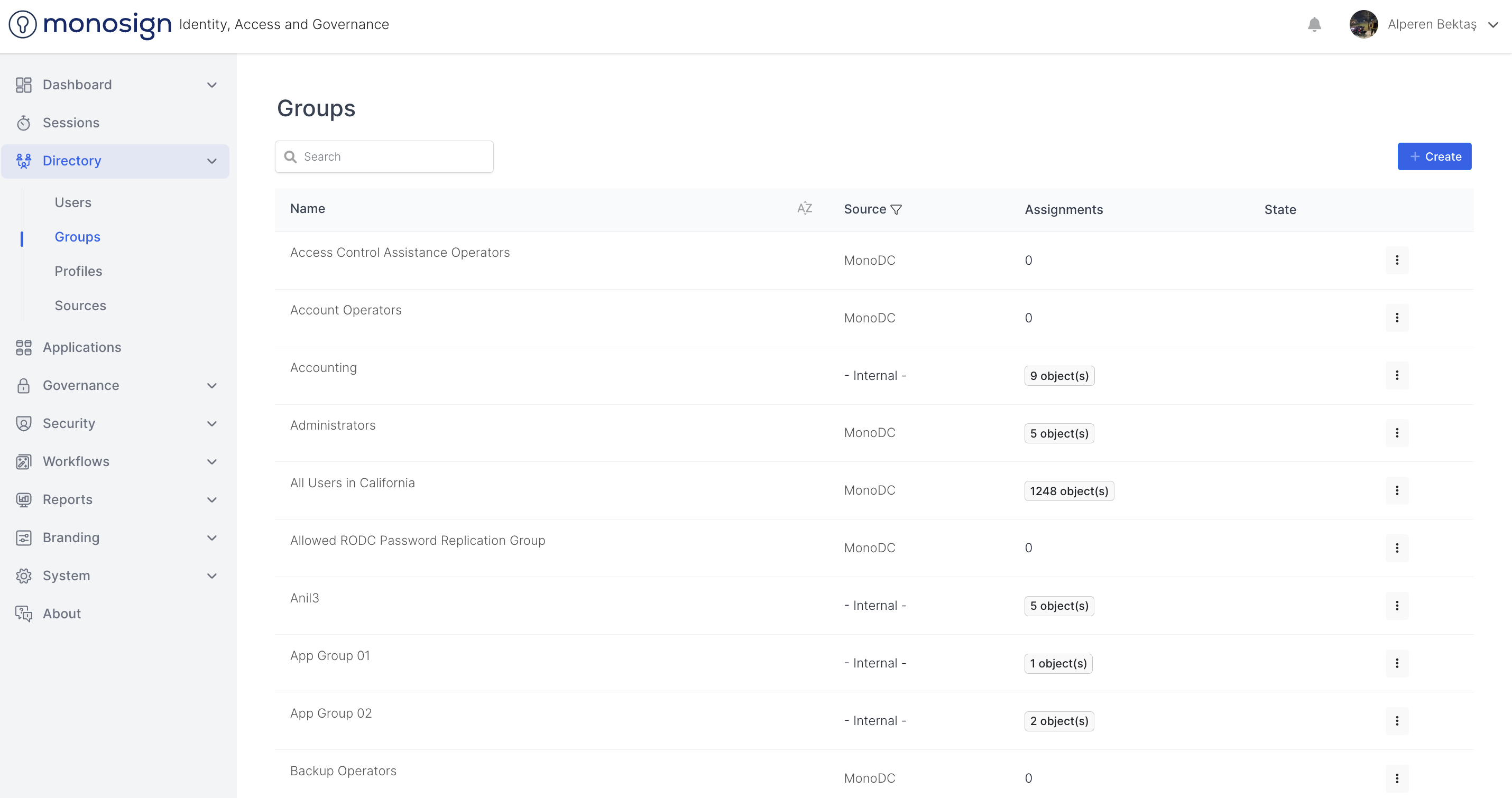 In the Groups section, you can find detailed information about the groups to which the objects defined on MonoSign are assigned, and you can assign new groups.