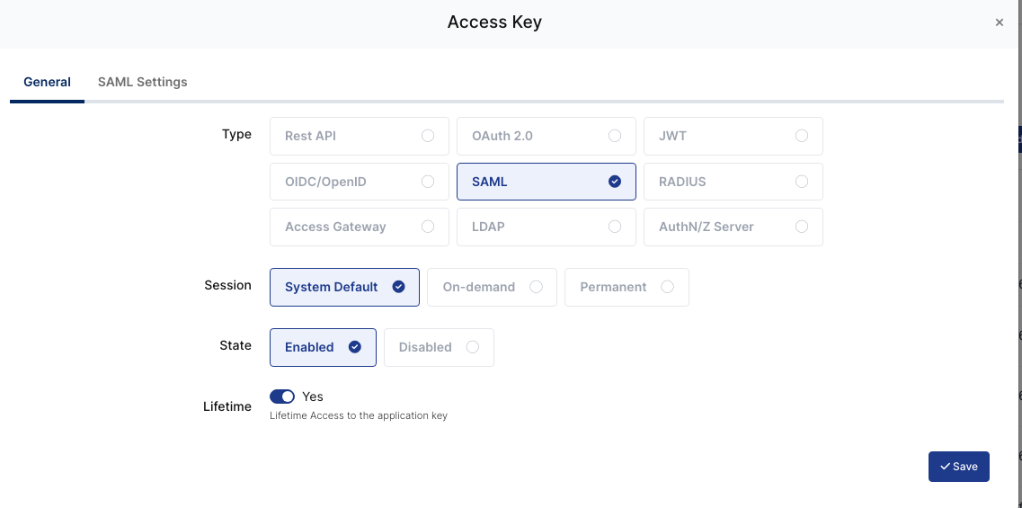 Key Type | SAML | Rest API, OAuth 2.0, JWT, OIDC/OpenID, SAML, RADIUS, Access Gateway, LDAP, AuthN/Z Server |