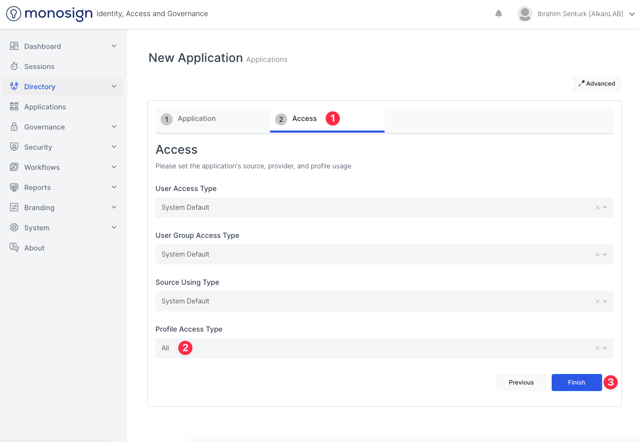 Due creating the application, go to the Access tab and specify to Profile Access Type as All and click Finish.