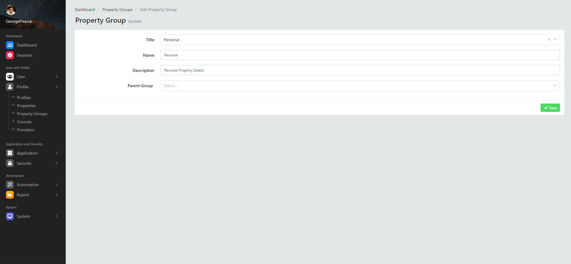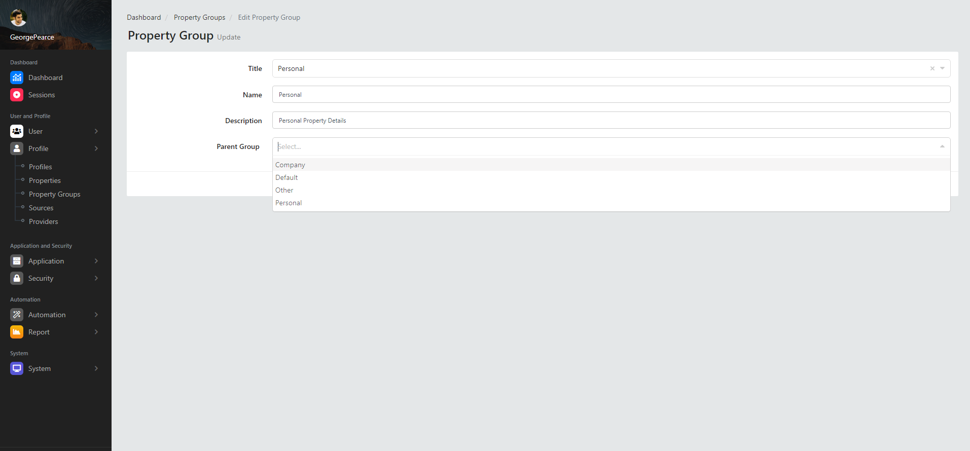 Modify Property Group Details