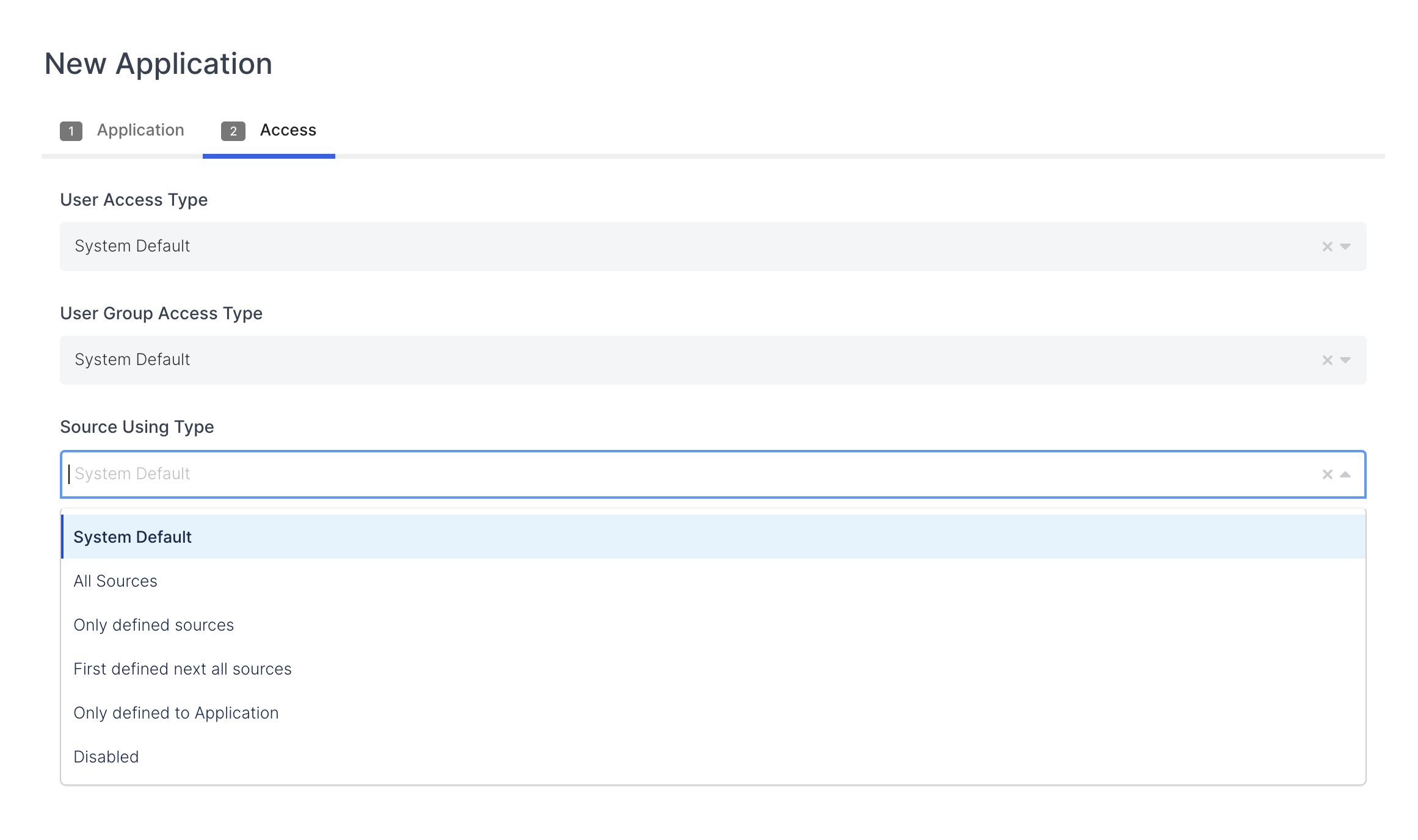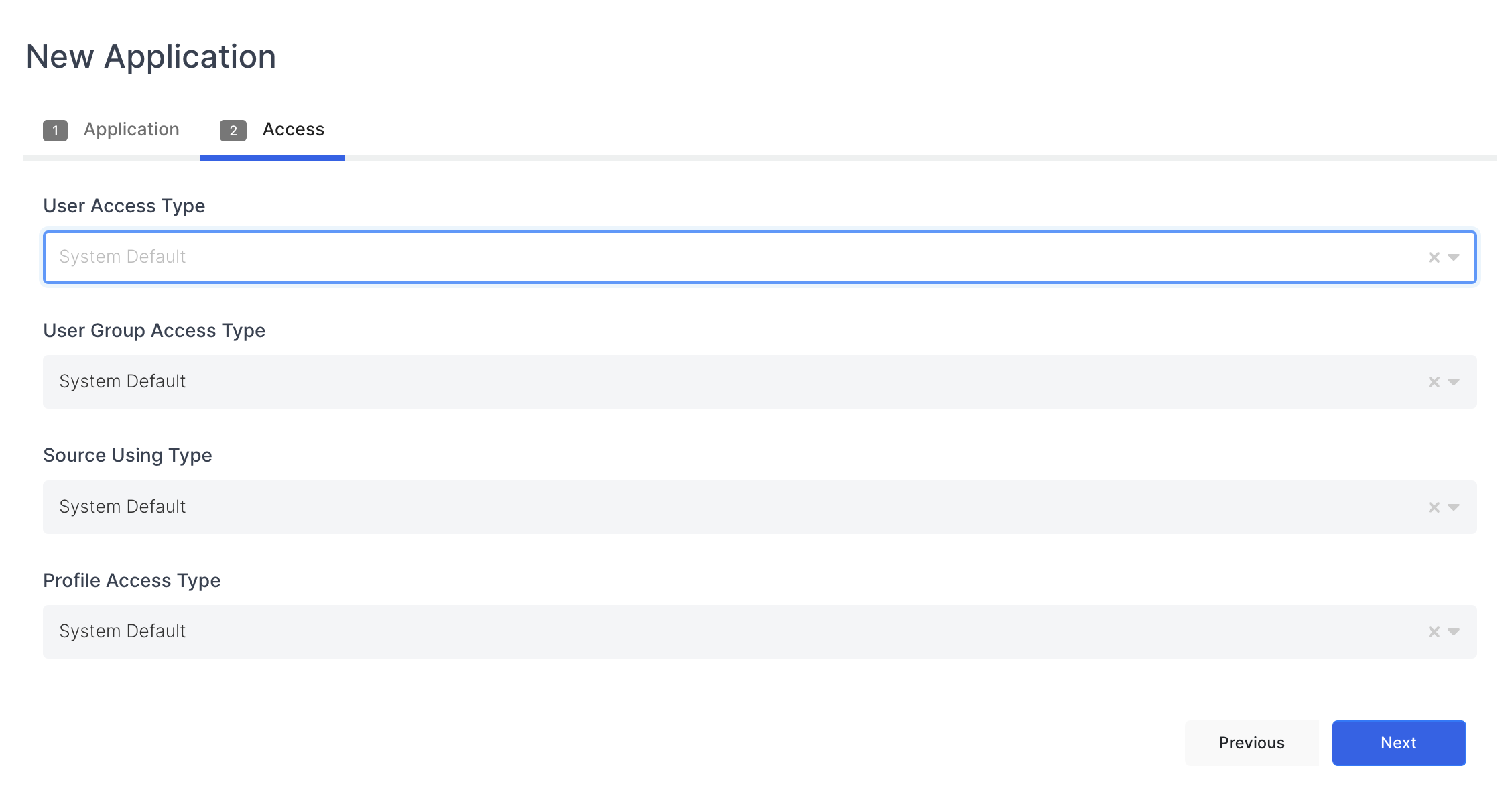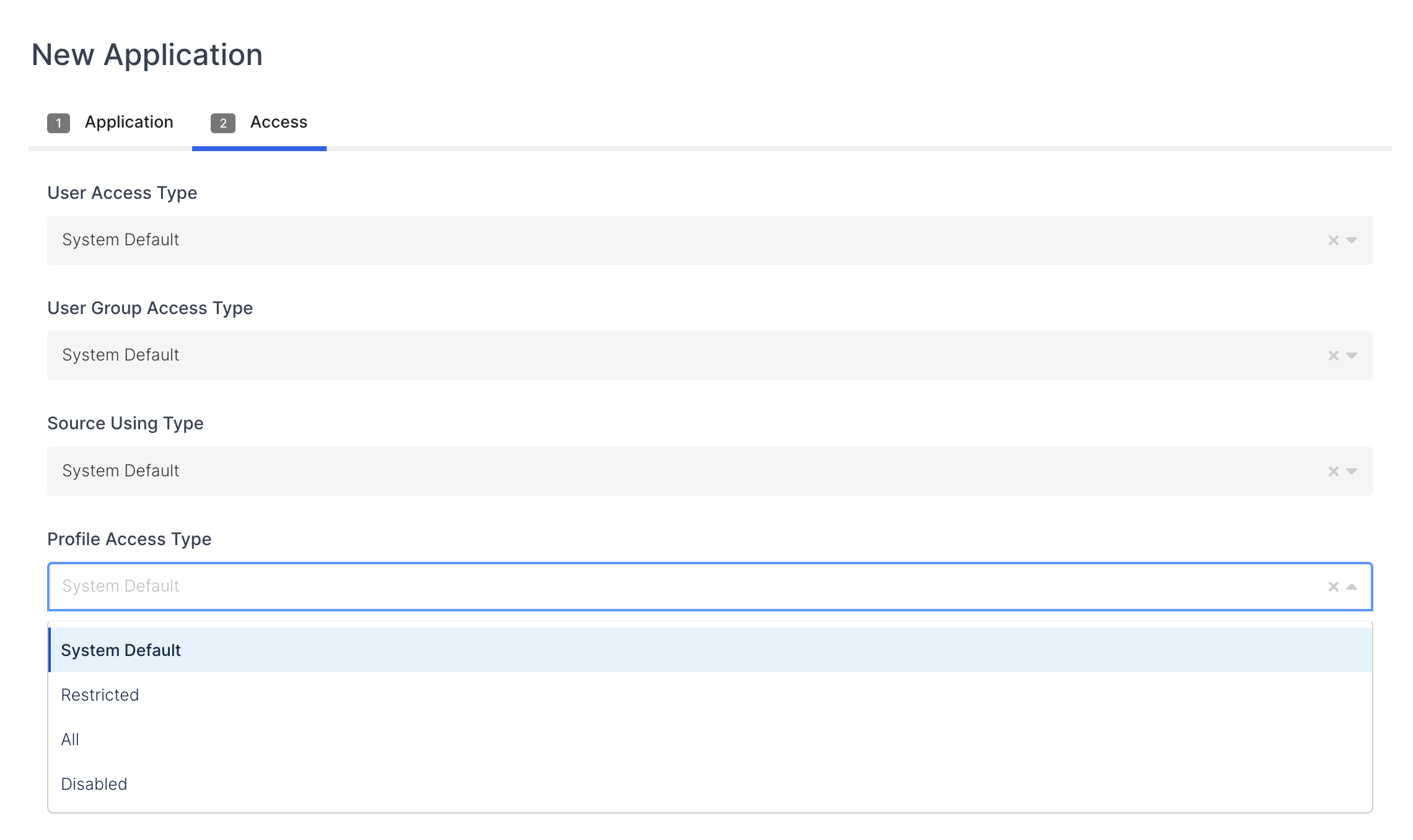 1 - System Default allows the application profile access type / type to be set as the system's default.