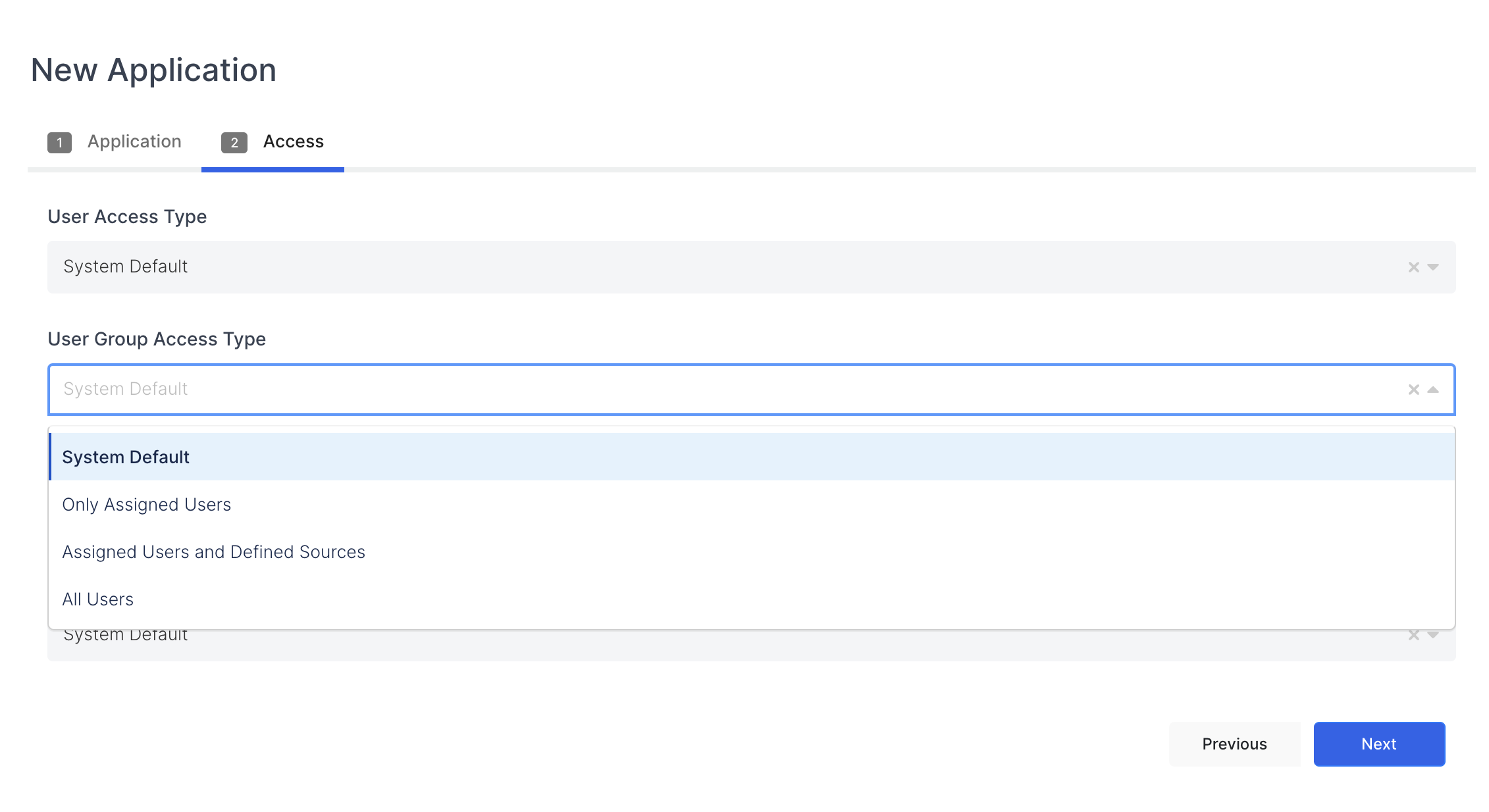1 - Allows the Systeam Defaul user group access type / type to be set as the system-defined default.