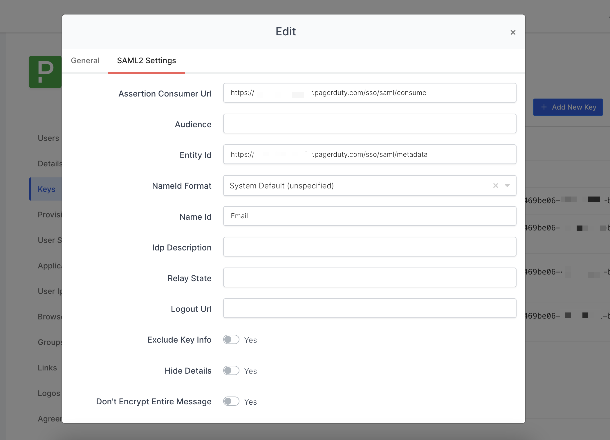 In order to configure the SAML key on MonoSign for PagerDuty SSO, you need to have various information provided by PagerDuty.