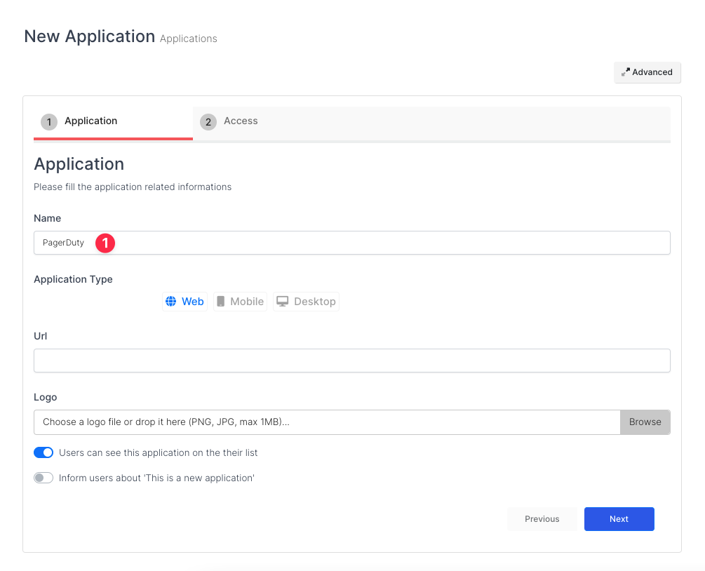 Create your application named PagerDuty on MonoSign.