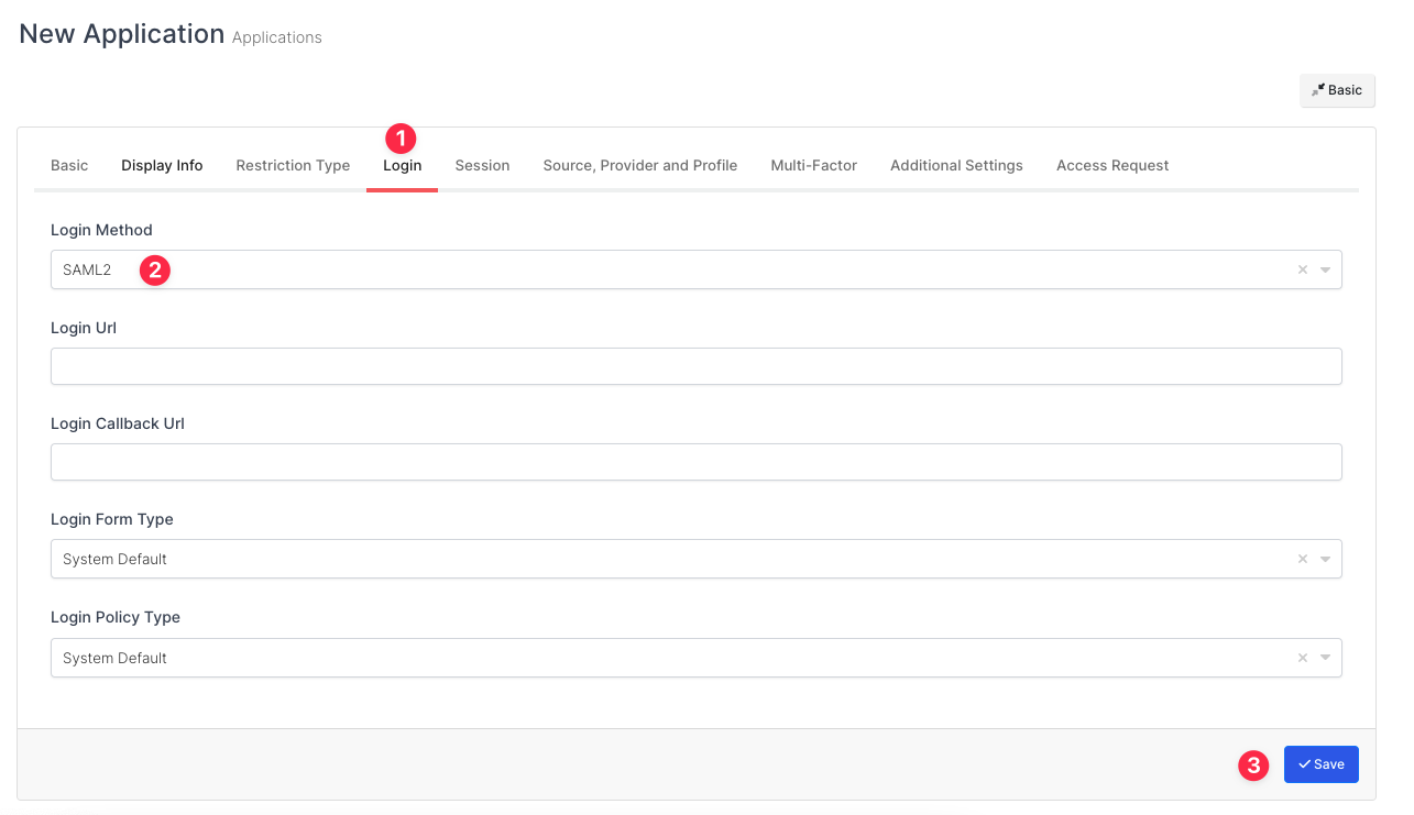 Next, click Advanced button and switch to Login tab and select Login Method value as SAML2.