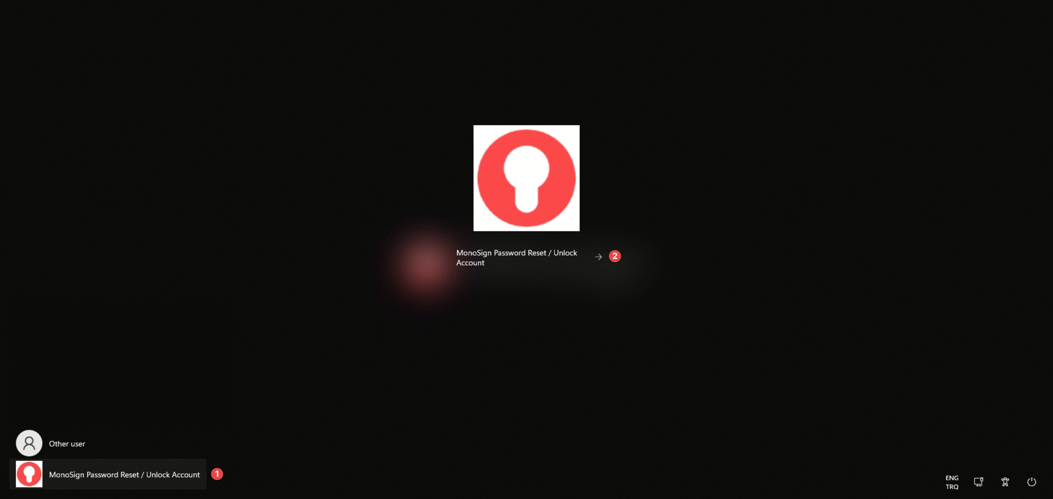 When you have that, you can see your “MonoSign Password Reset / Account Unlock” option on your login screen.