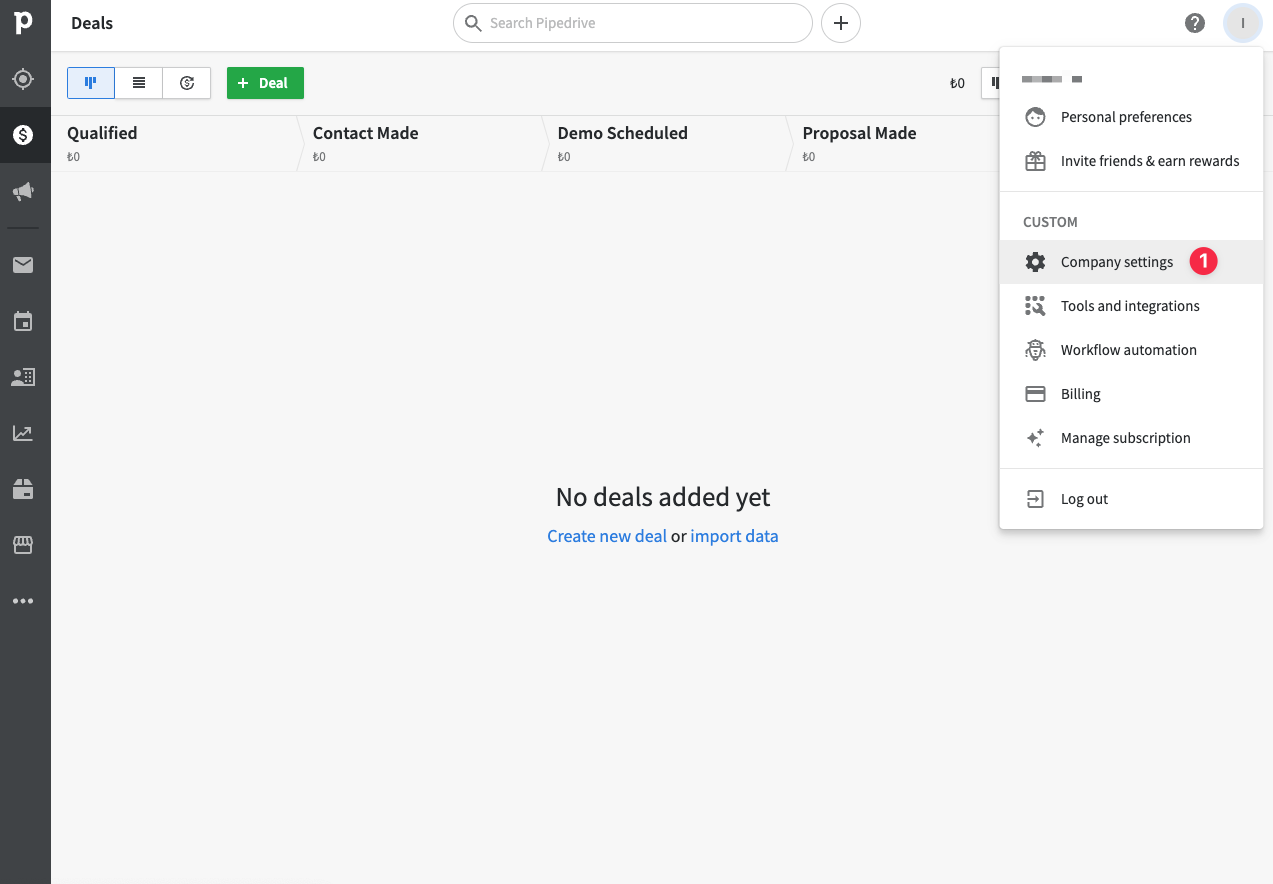 First, navigate to Company Settings from right top menu.