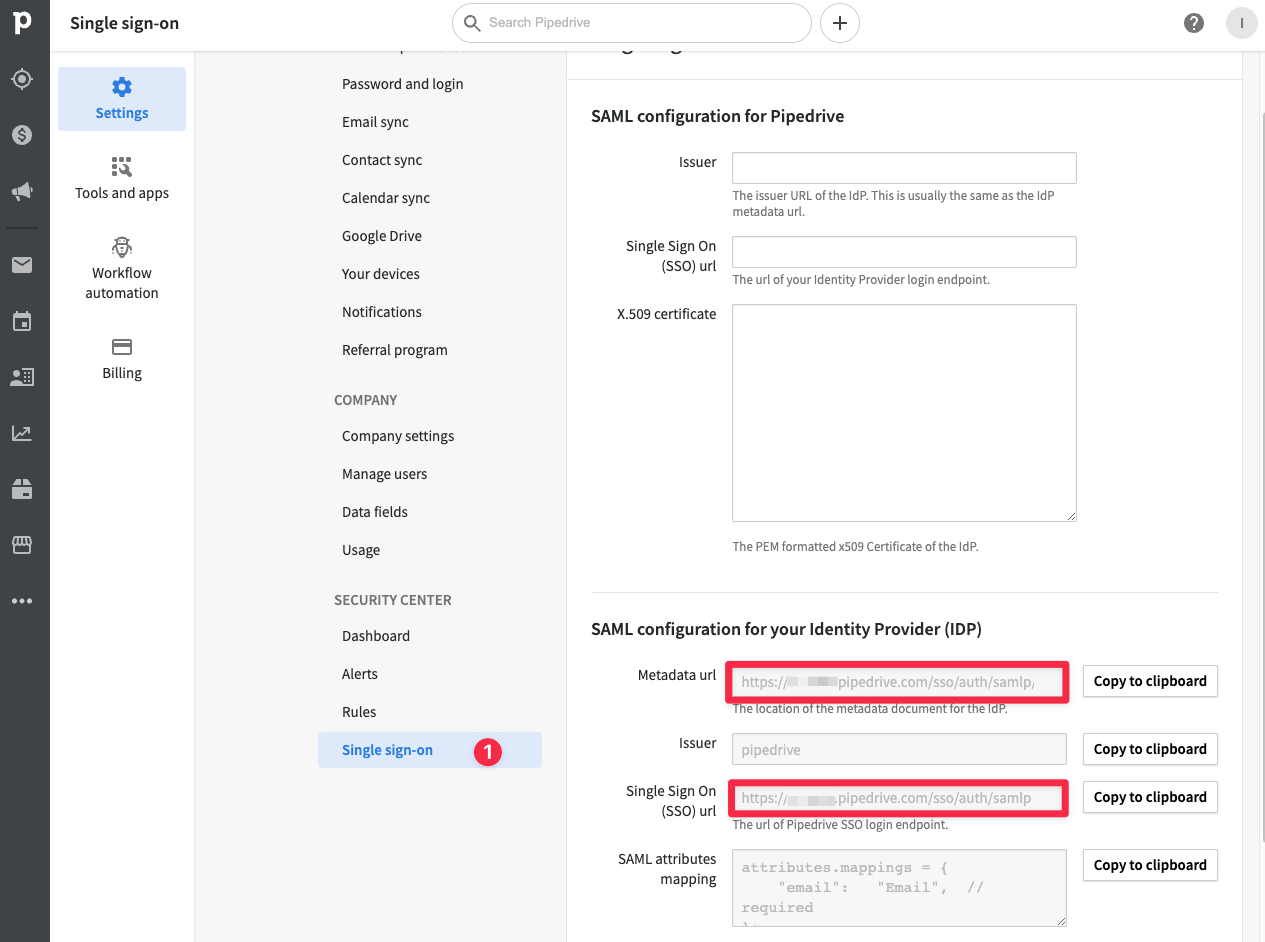 View Pipedrive SAML Metadata