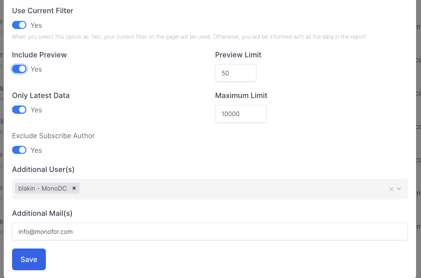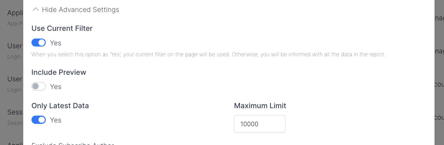 Only Latest Data | Defines if only latest data will be added to Subscription mail. There is a limitation for this configuration. The maximum limit is 10000. Admin user can set a limit as shown. ![]() Only Latest Data |