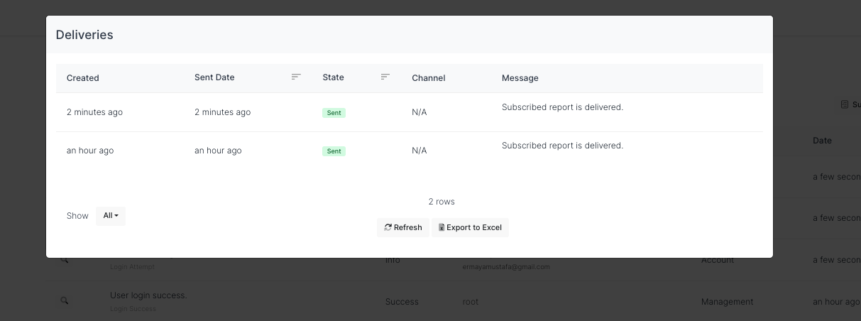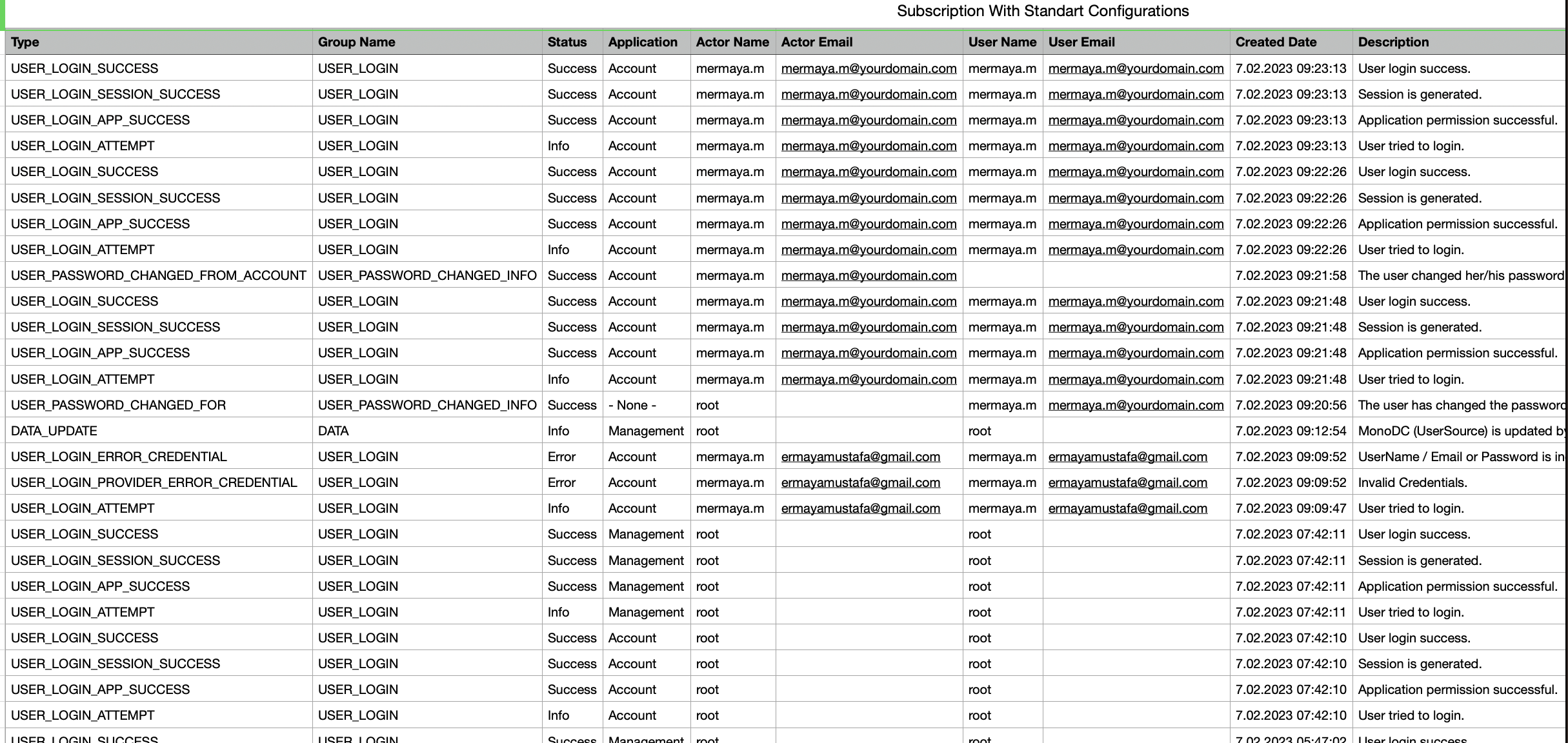 User Current Filter | Defines if table filter will be used for subscription mails. When enable this option, your current filter on the page will be used. Otherwise, you will be informed with all the data in the report. Let’s assume admin user wants to get subscription mail with only Credential Error filter therefore Admin user should enable “Use Current Filter“. |