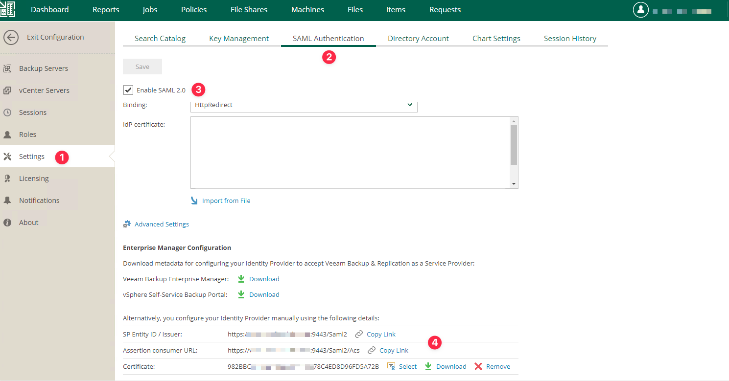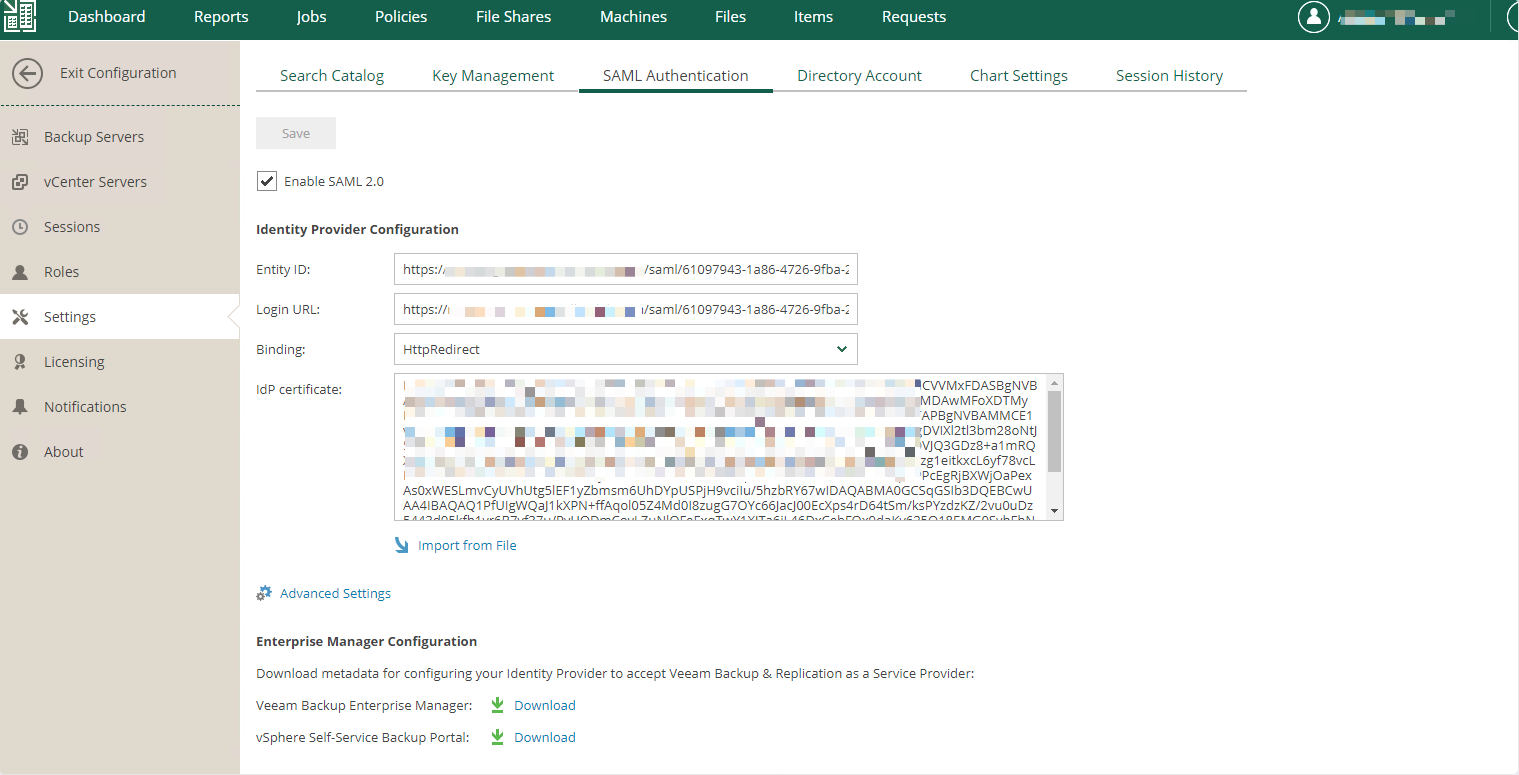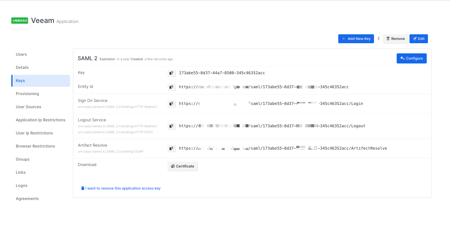 In order to configure the SAML key on MonoSign for Veeam SSO, you need to have various information provided by Veeam.