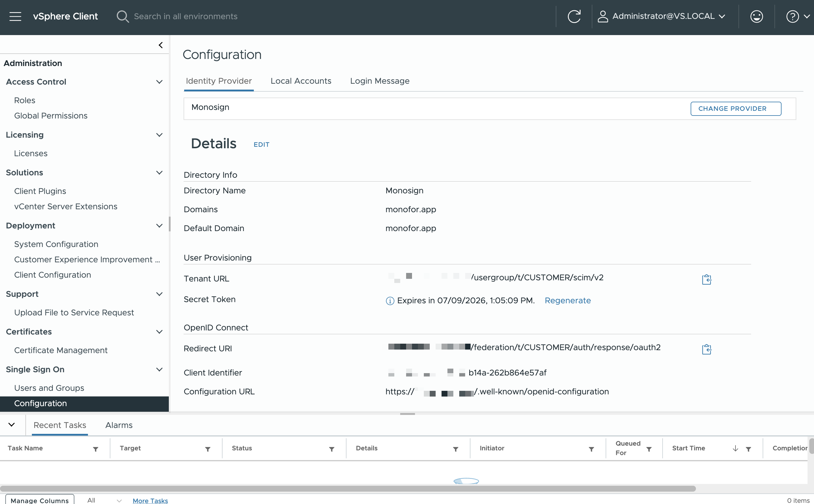 Configuration Single Sign-On for VMware vCenter vSphere Client