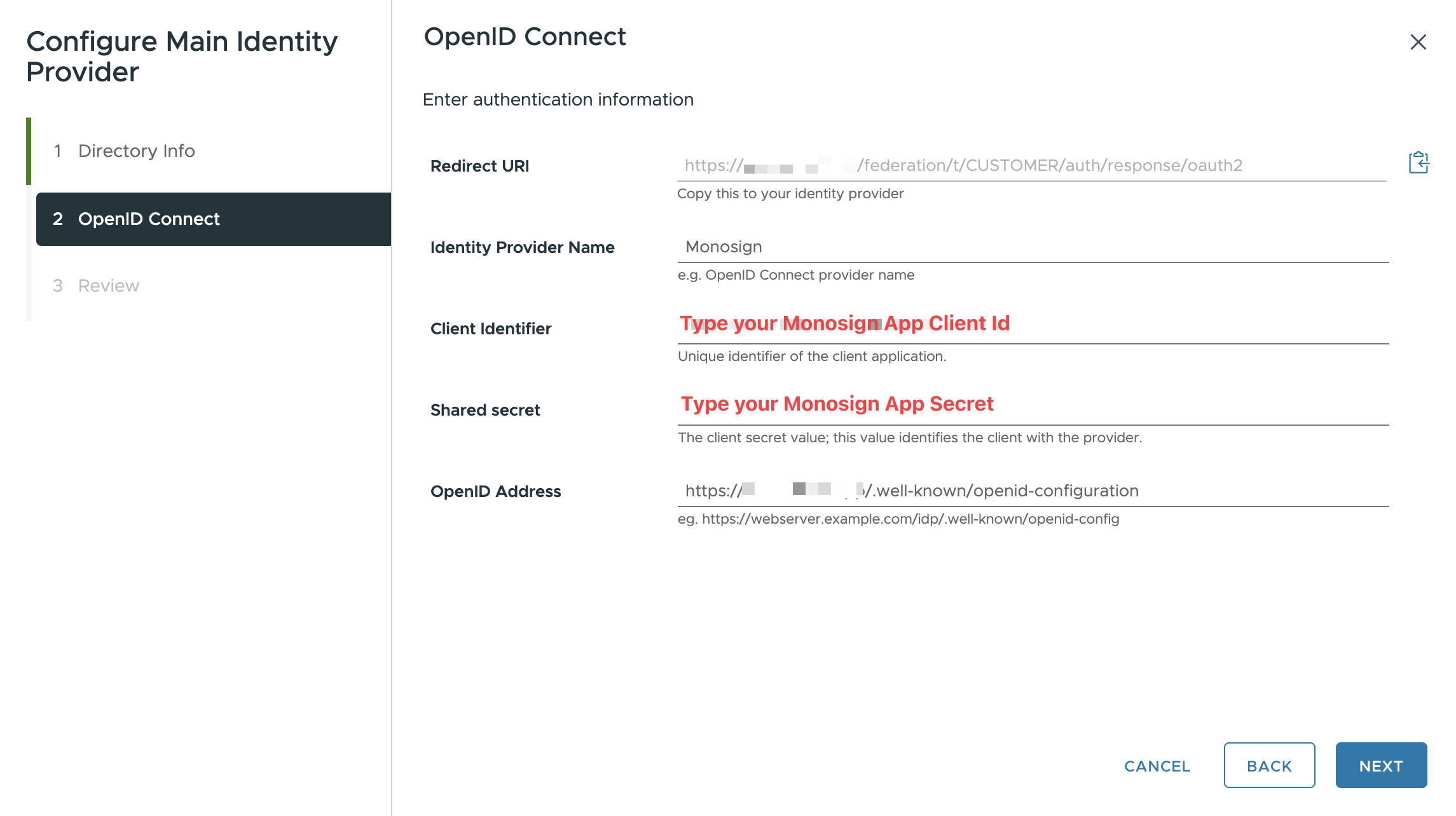Please add your OIDC/OpenID settings to the application. The following information is needed for your configuration.