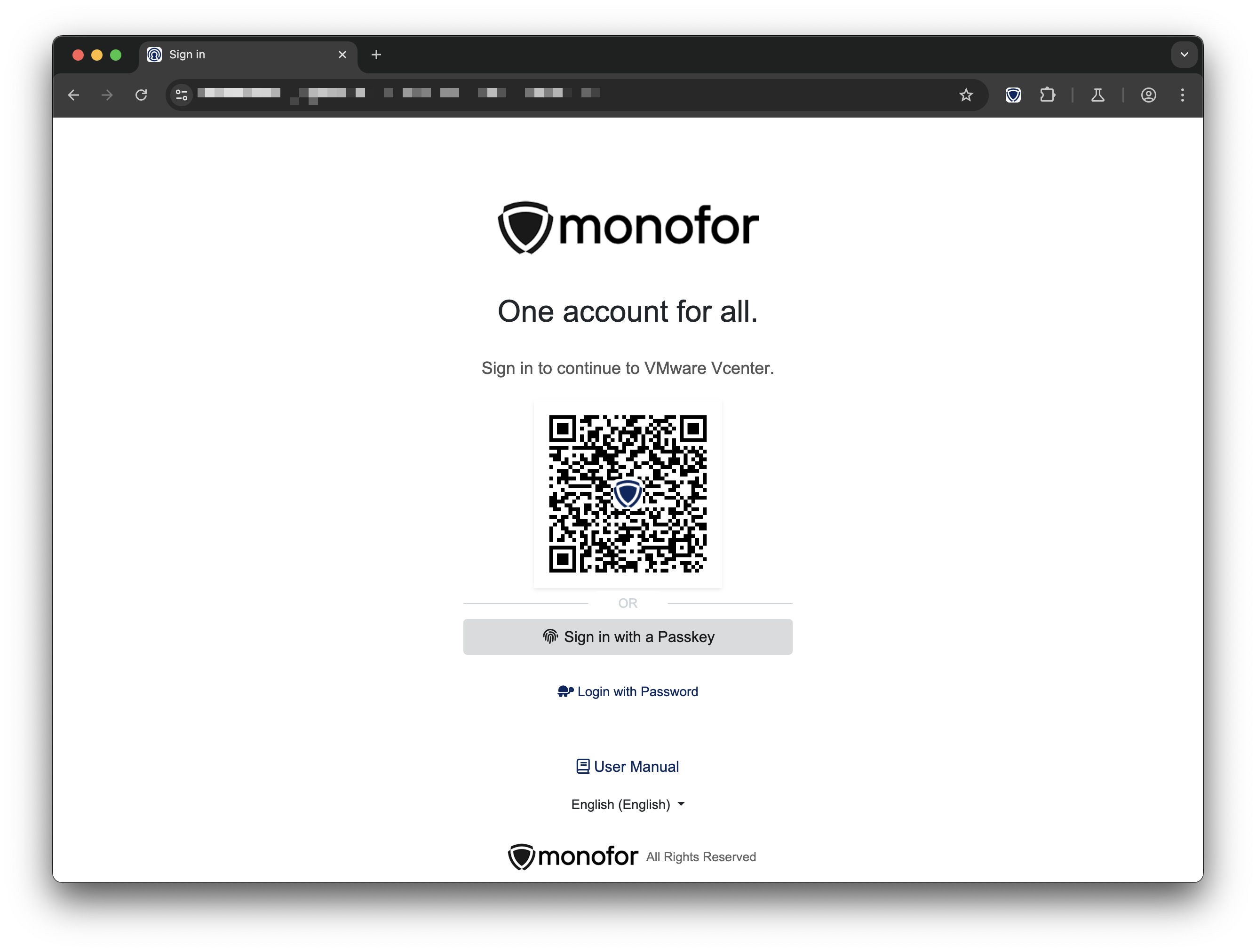If everything is well configured, the page will be redirected to Monosign’s login page. It can be log in passwordless with QR code or type username and password.