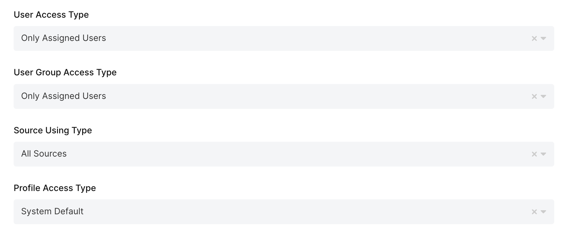 Configure the “User Access Type“ and “User Group Access Type” as “Only Assigned Users.”