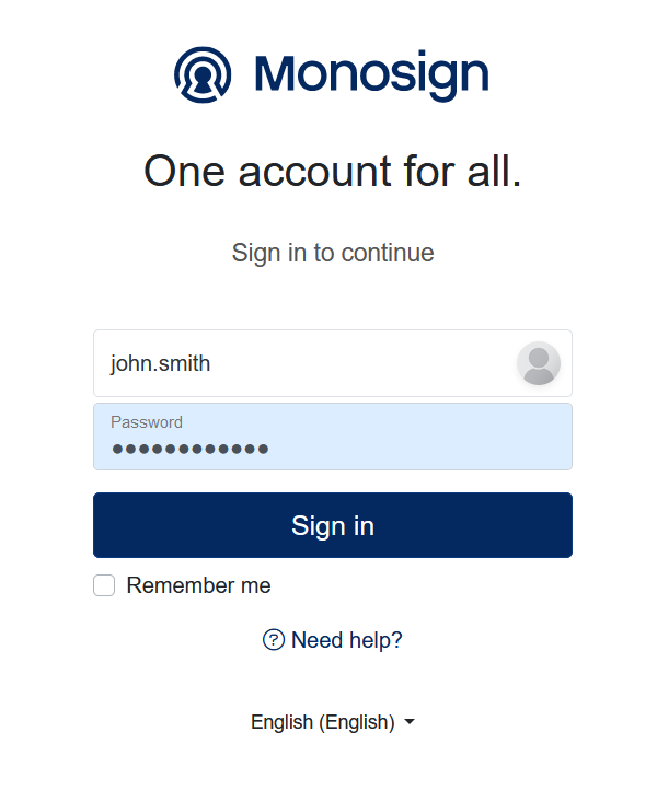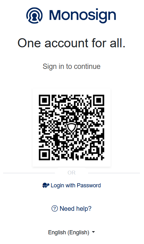 If everything is well configured, you will be see the Monosign’s login page. You can log in passwordless with your QR code or you can type your user name and password.