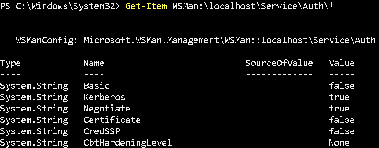 Check WinRM Service Authentication CBTHardeningLevel was set or not with below command.