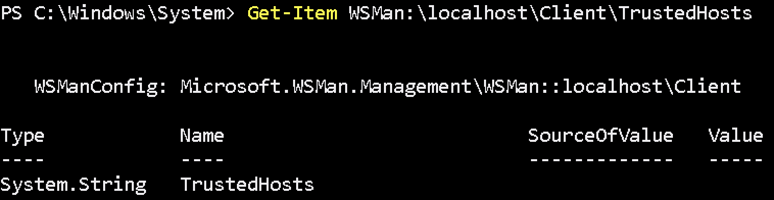 Get-Item WSMan:\localhost\Client\TrustedHosts