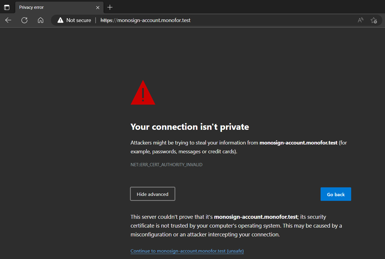 You can click Advanced → Continue to sync.monofor.com