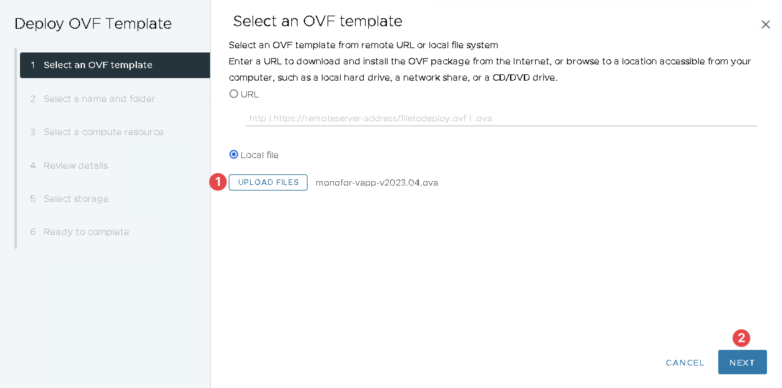 Monofor vAppliance will be import to VMware Vcenter. Below steps will help how to import monofor-vapp-v2023.04.ova file