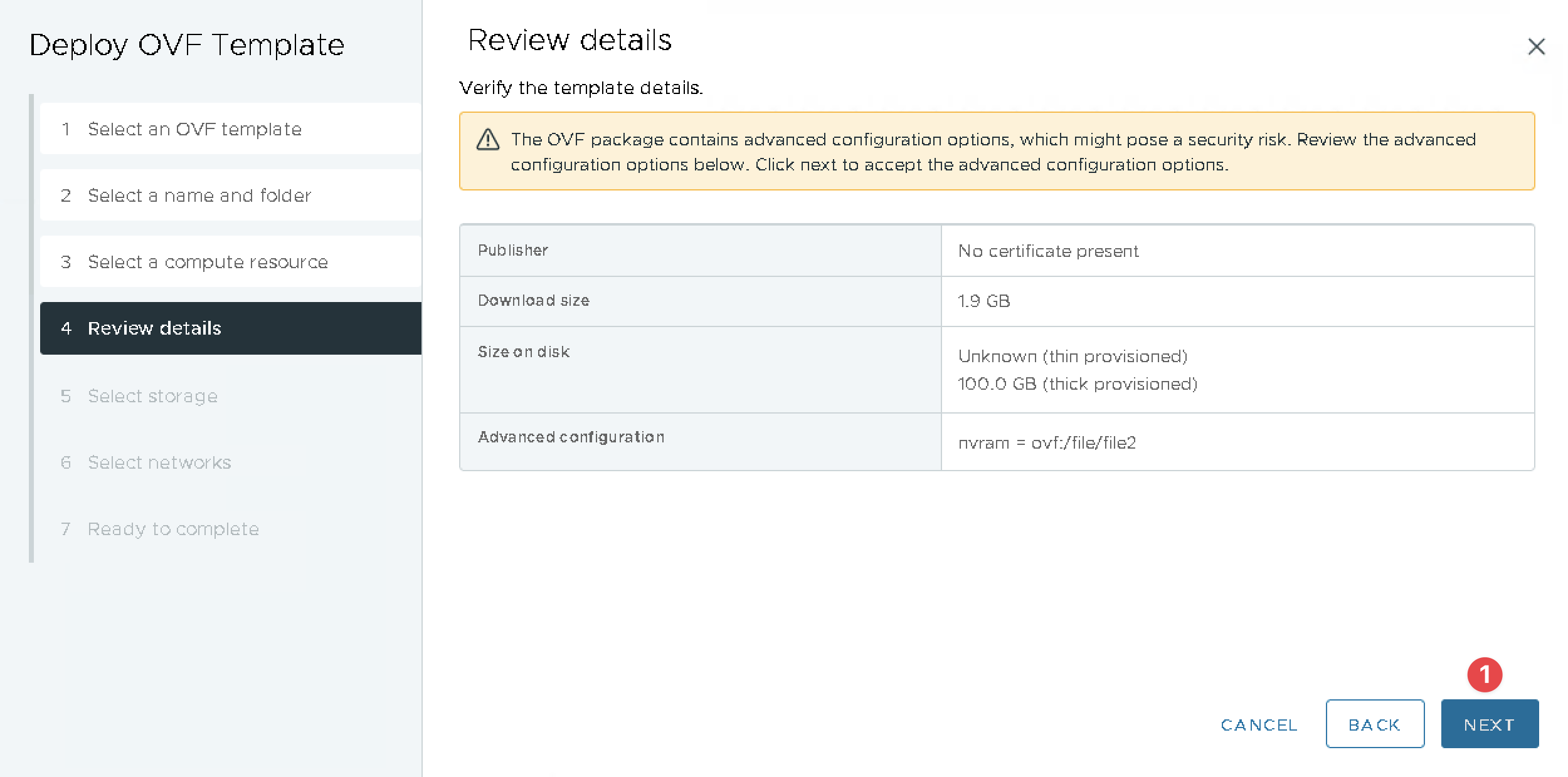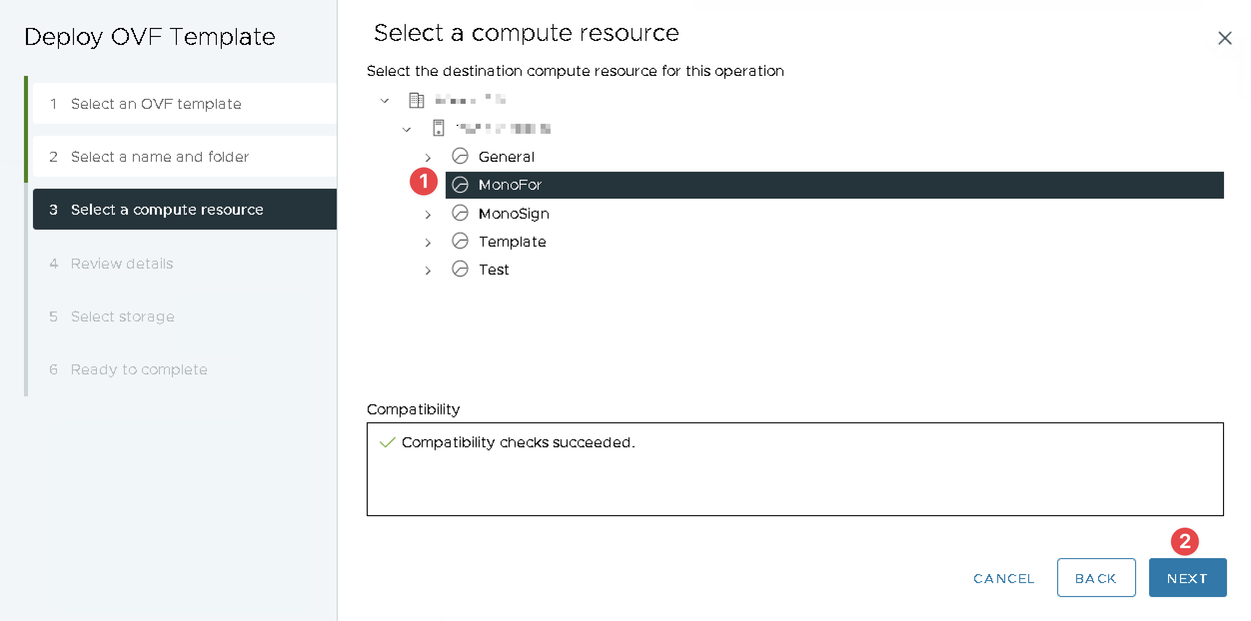 Select(1) Compute Resource if needed and Click(2) NEXT.